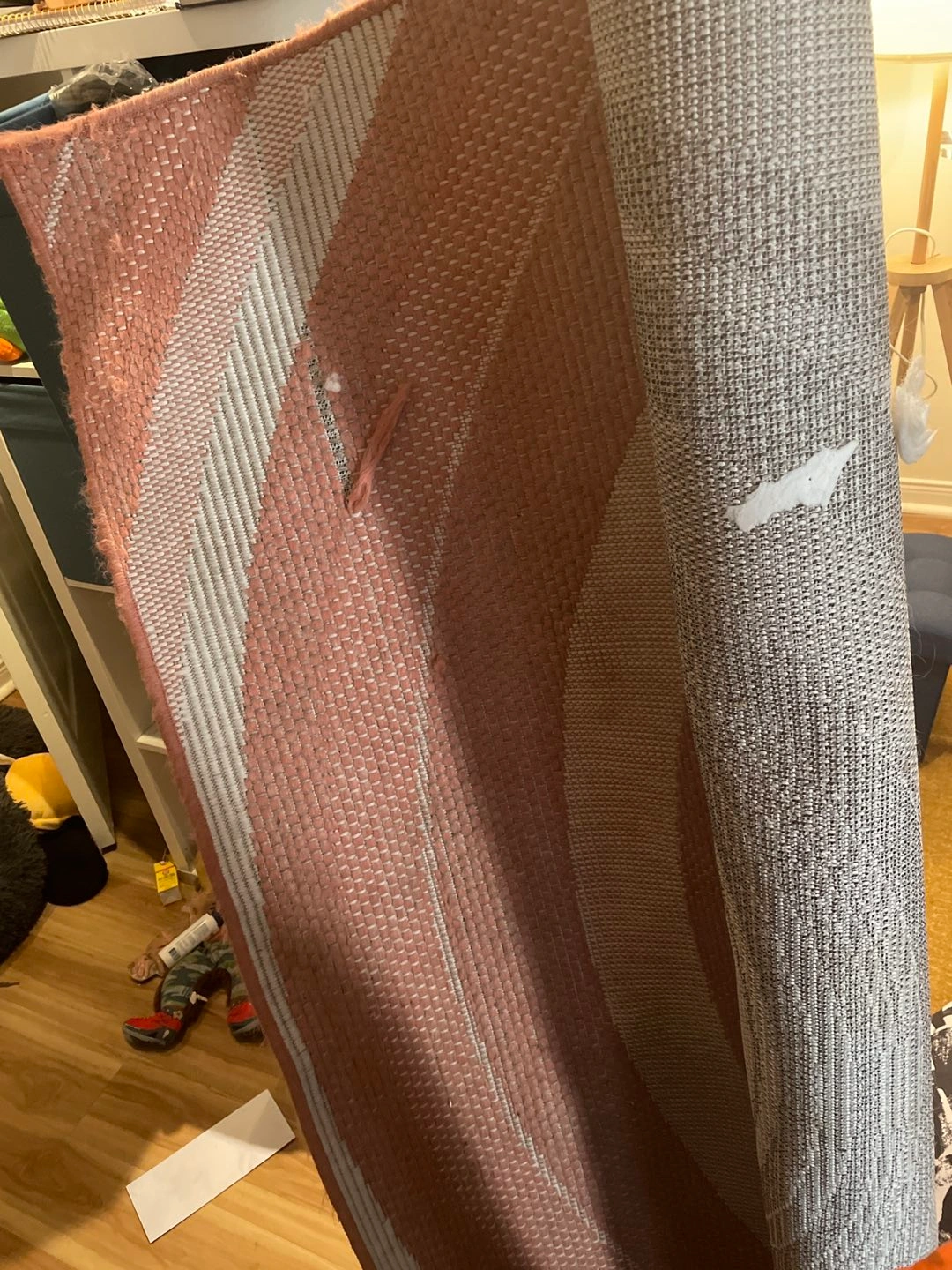 #freecycle Well loved 5’3 x 7’3 pink rug that I somehow do not have any pictures of. It has some fraying/strings missing from places that my dog dug at it. It also has some dirt on it, but if you wash it, it will be in really good shape! I will donate it in 2 weeks if nobody takes the offer :)