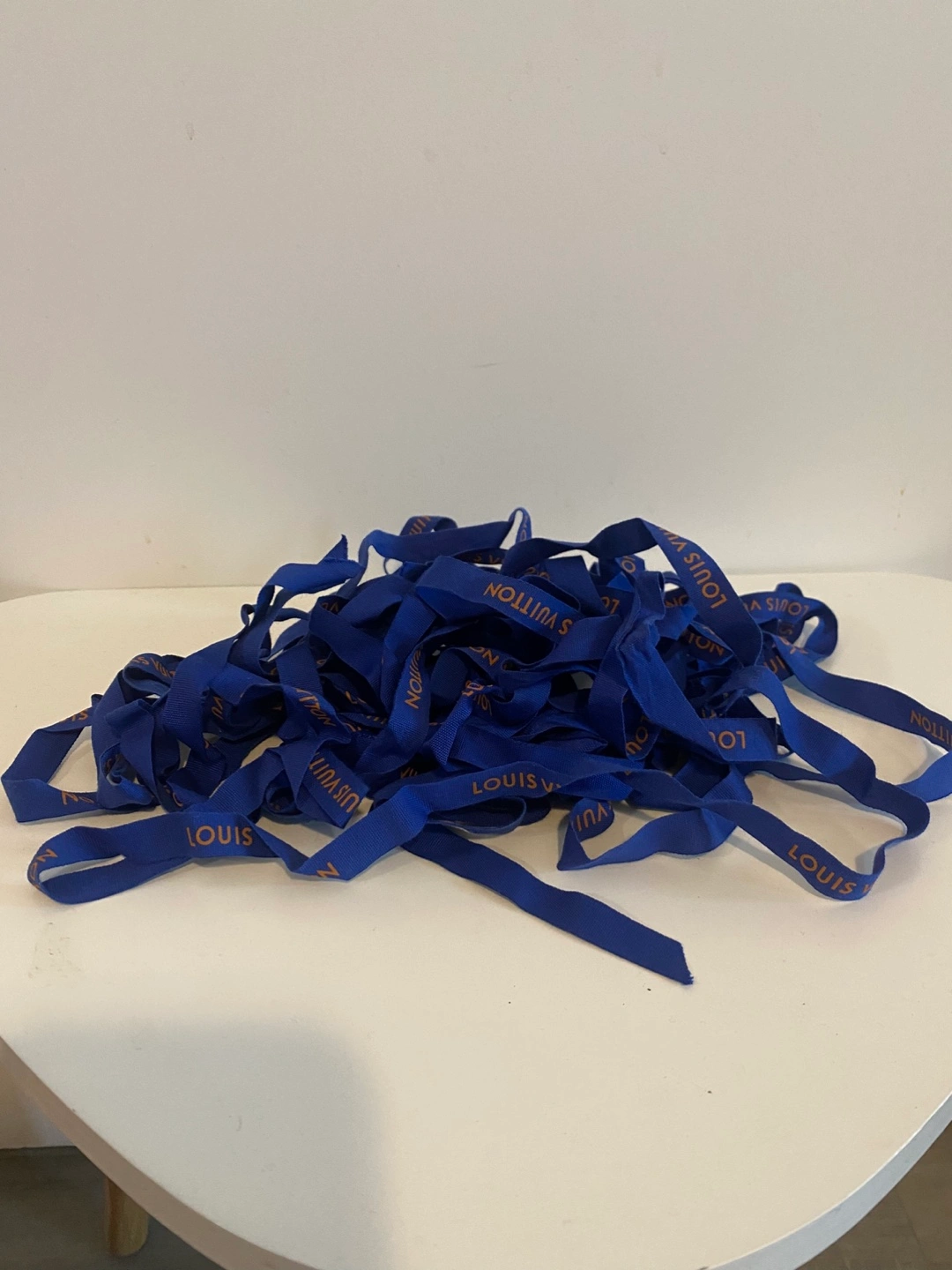Bulk lot of blue Louis Vuitton ribbon. Perfect for crafting or other projects. Various lengths.