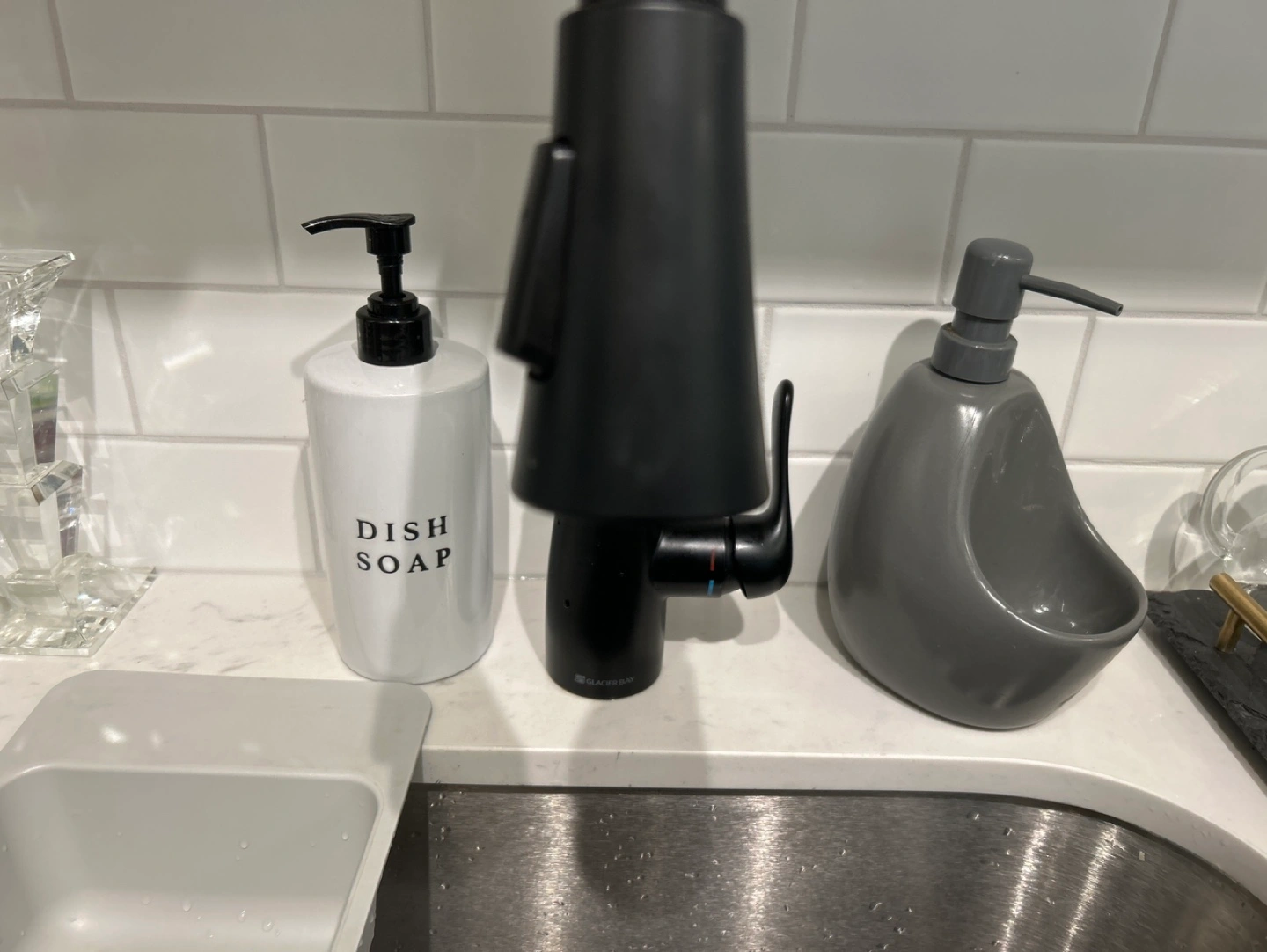 Unique grey stone soap dispenser. Modern design. Perfect for bathroom or kitchen.