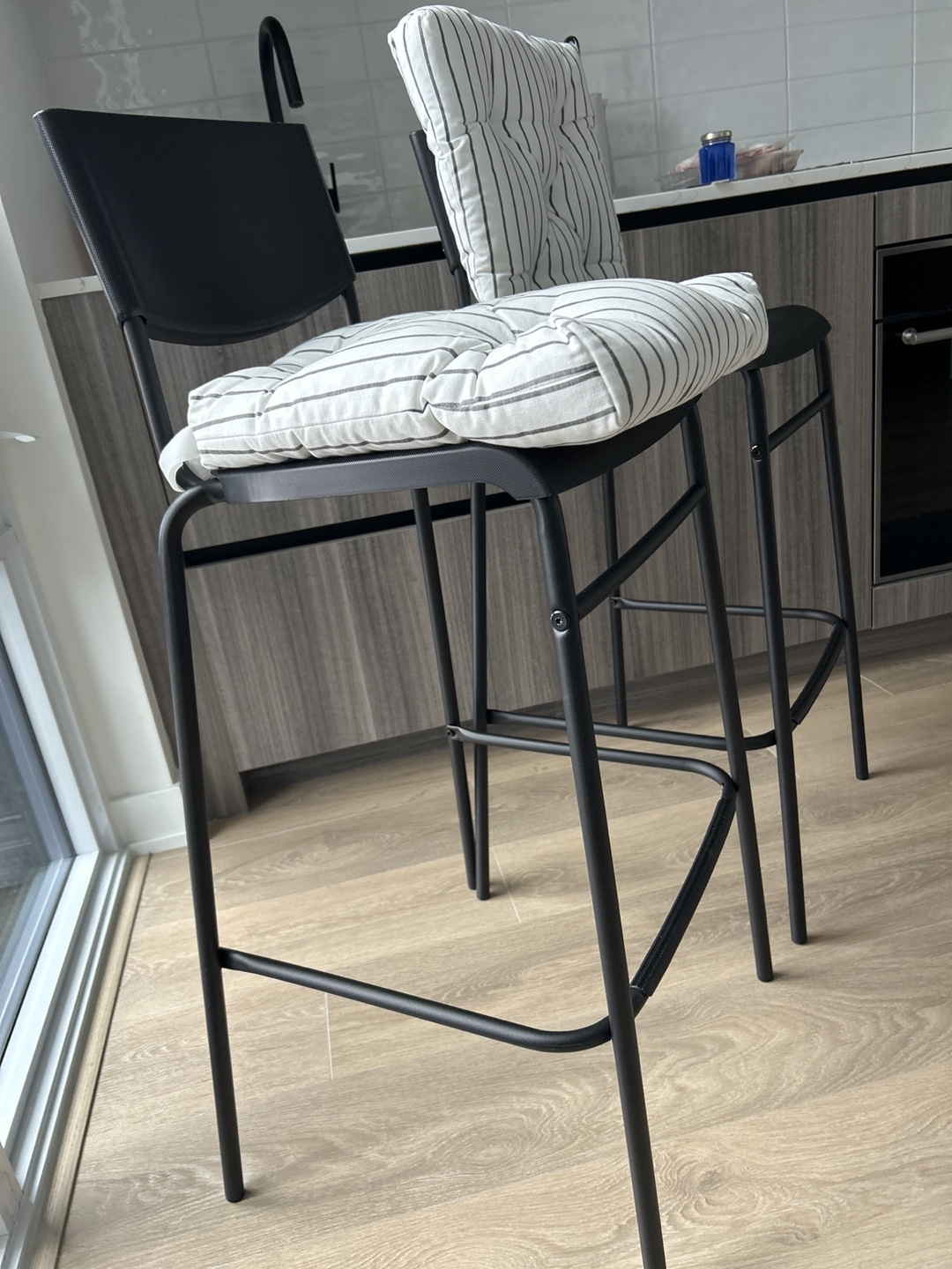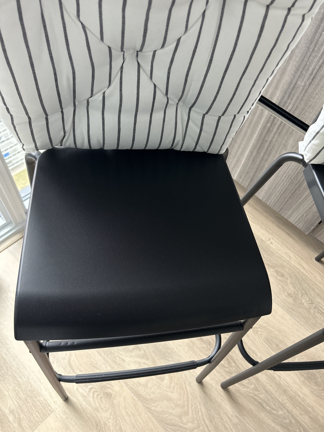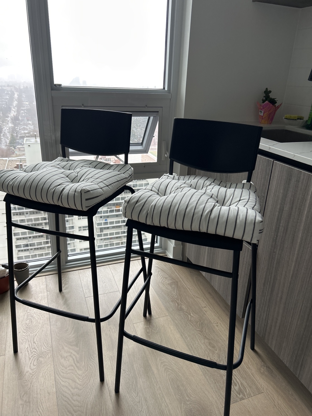 Two black metal bar stools. Perfect for island and small spaces. Excellent condition.
