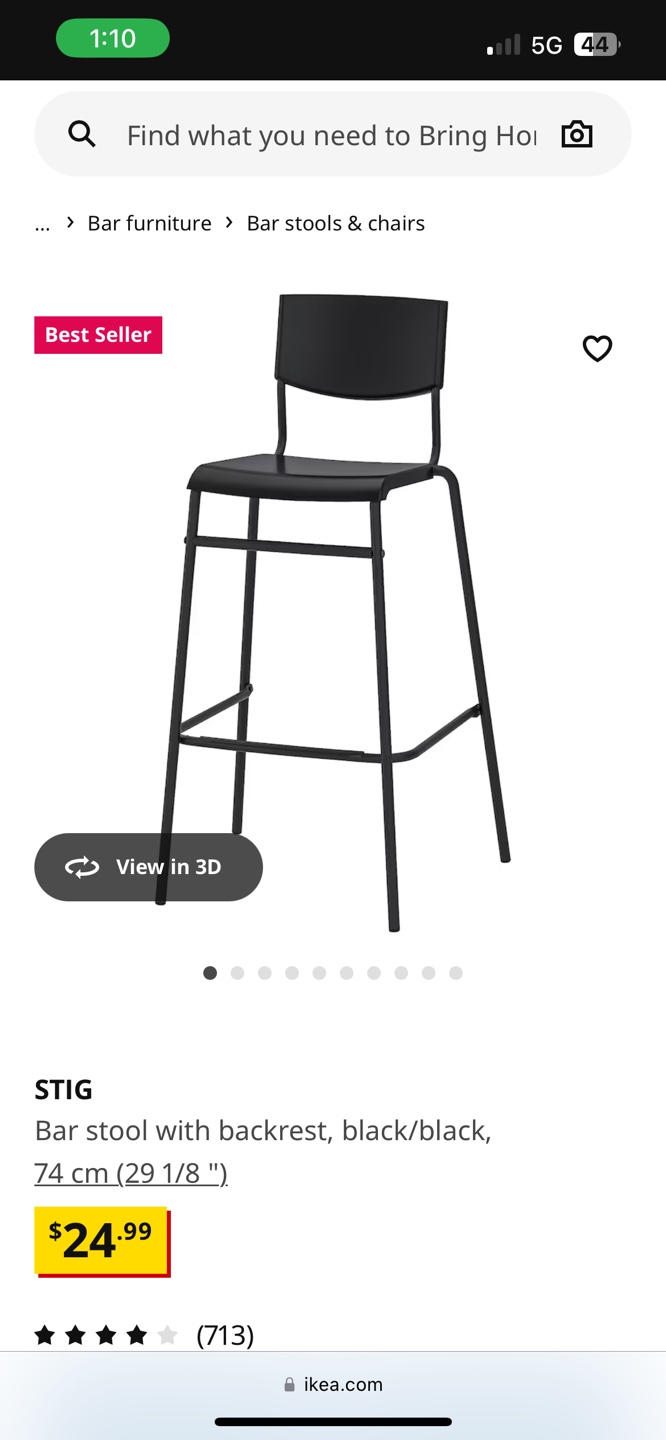 Pair of IKEA STIG Black Bar Stools