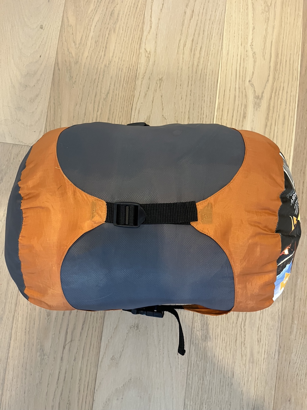 Extra large sleeping bag. Durable ripstop shell. Removable air pillow. 3.0lb/1.36kg Hollowfill. Orange and grey. Compresses into stuff sack.