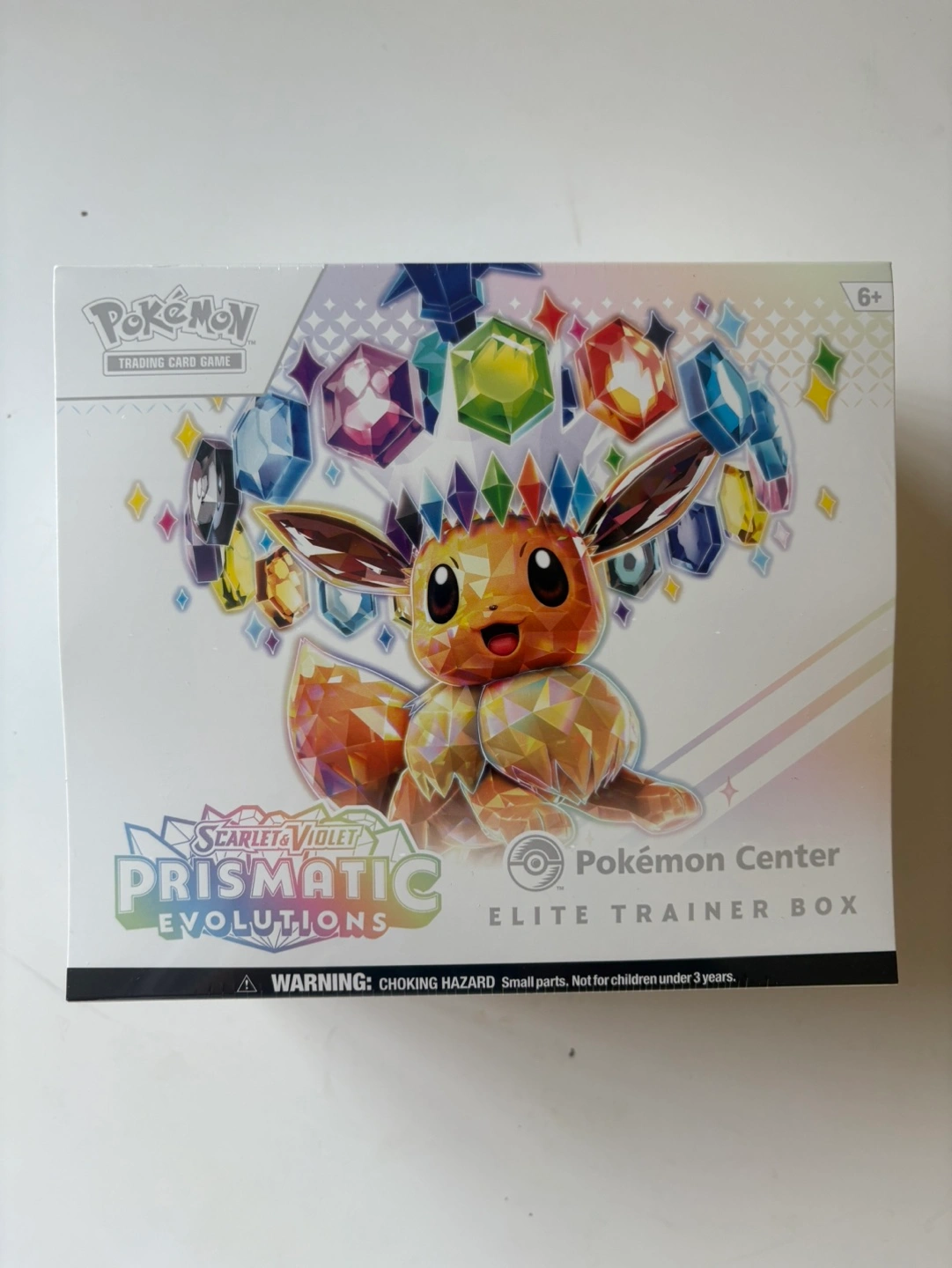 ✨BRAND NEW! SEALED IN ORIGINAL PACKAGING!✨ **bought straight off the Pokémon Center website (can provide proof of email receipt if wanted!) 🤩Scarlet & Violet-Prismatic Evolutions Pokémon Center Elite Trainer Box! From fluffy and fiery to freezing and fanciful, Eevee and its many Evolutions hold a special place in the hearts of Pokémon Trainers across the land! Discover their unique new powers as Stellar Tera Pokémon ex, and look for treasure of your very own across a grand gathering of Pokémon ex from Paldea and beyond. Glittering gems and hidden patterns await at the end of the rainbow in the Pokémon TCG: Scarlet & Violet—Prismatic Evolutions expansion! The Pokémon TCG: Scarlet & Violet—Prismatic Evolutions Pokémon Center Elite Trainer Box includes: 11 Pokémon TCG: Scarlet & Violet—Prismatic Evolutions booster packs Each booster pack contains 10 cards and 1 Basic Energy. Cards vary by pack. 1 full-art foil promo card featuring Eevee with a Pokémon Center logo 1 full-art foil promo card featuring Eevee 65 card sleeves featuring Eevee as a Stellar Tera Pokémon 45 Pokémon TCG Energy cards A player’s guide to the Scarlet & Violet—Prismatic Evolutions expansion 6 damage-counter dice 1 competition-legal coin-flip die 2 plastic condition markers A box to hold everything, with 4 dividers to keep it organized A code card for Pokémon Trading Card Game Live 💰$480 OBO
