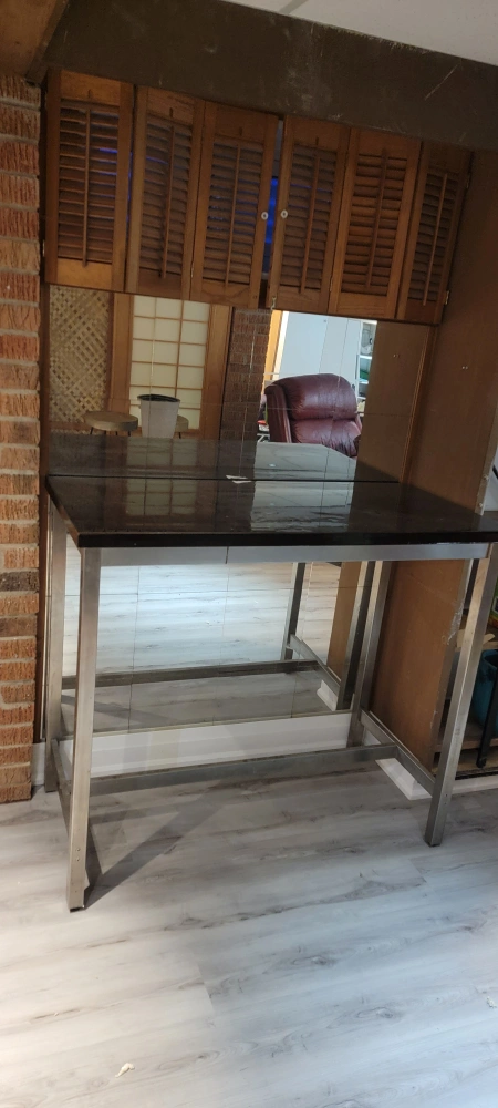 Show allDining Table with Wine Storage & Six Swivel Stools