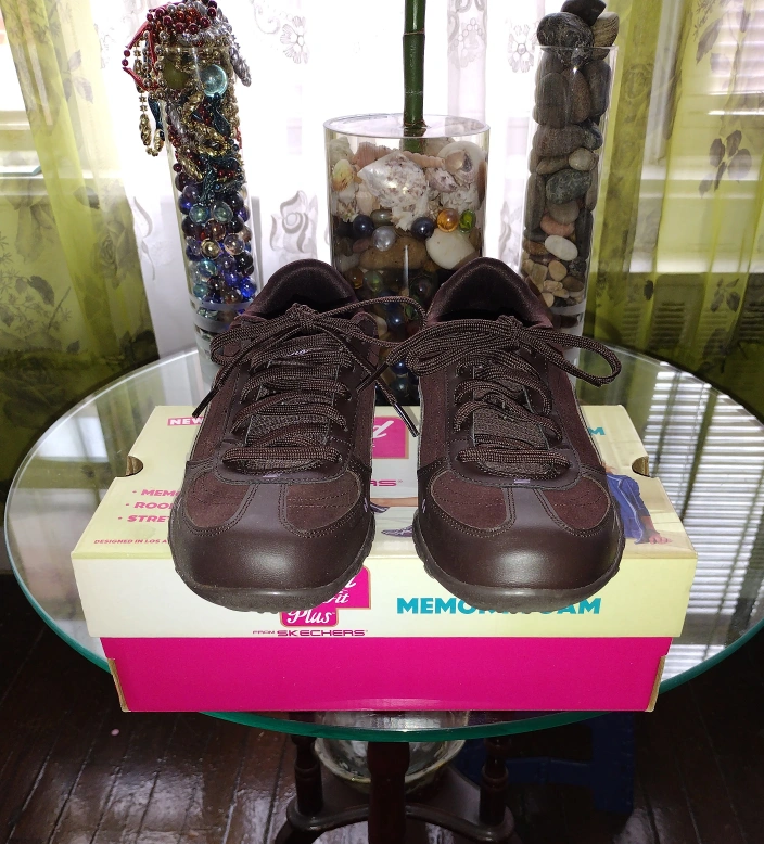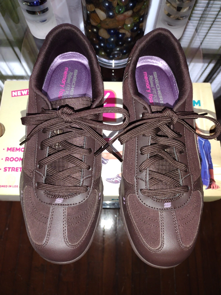 Brown women's shoes. Lace-up closure. Memory foam insoles. Relaxed fit. New in box.