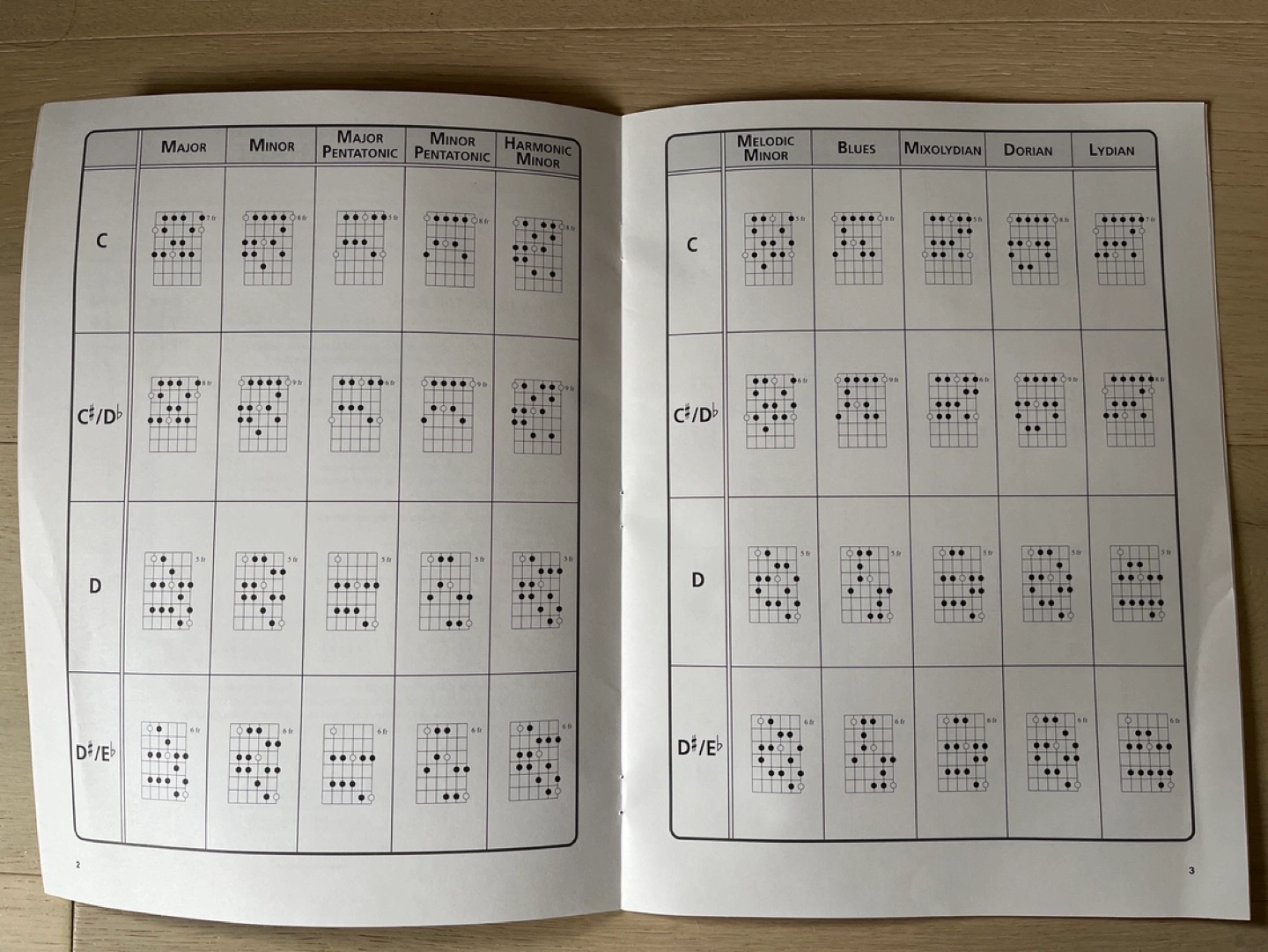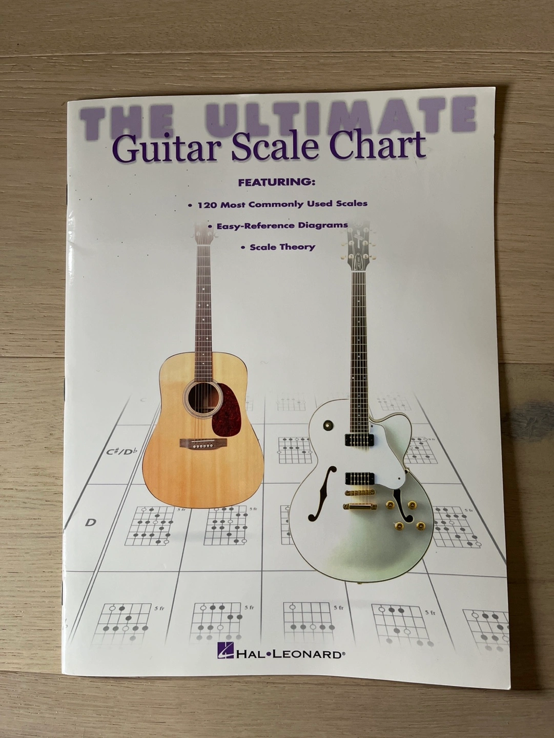 Guitar scale chart book. Features 120 commonly used scales, easy-reference diagrams, and scale theory. Excellent reference for guitarists of all levels.