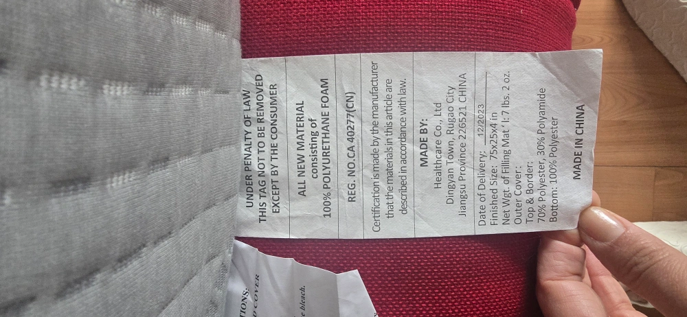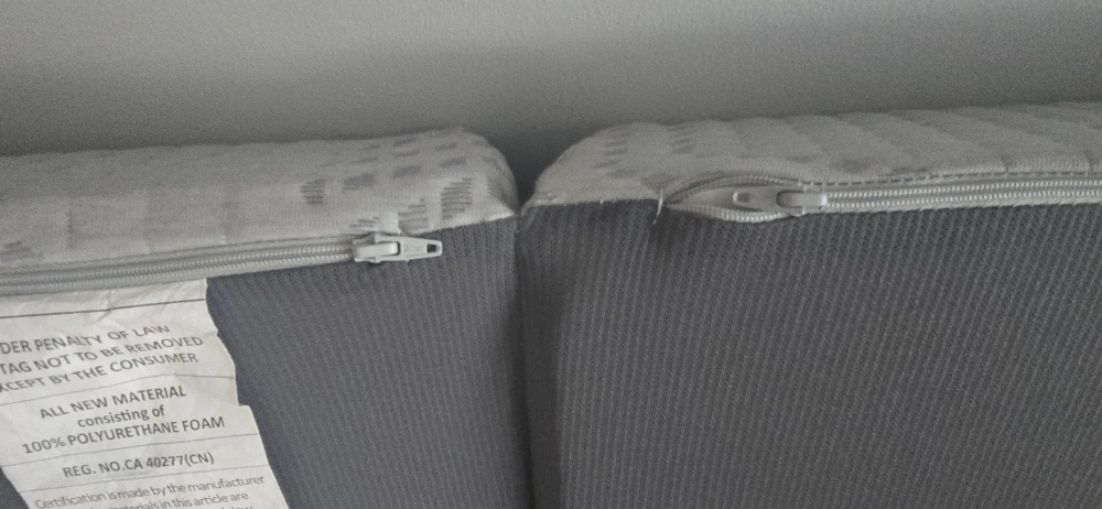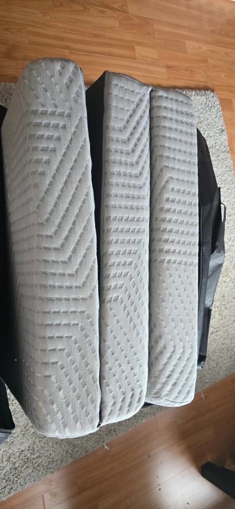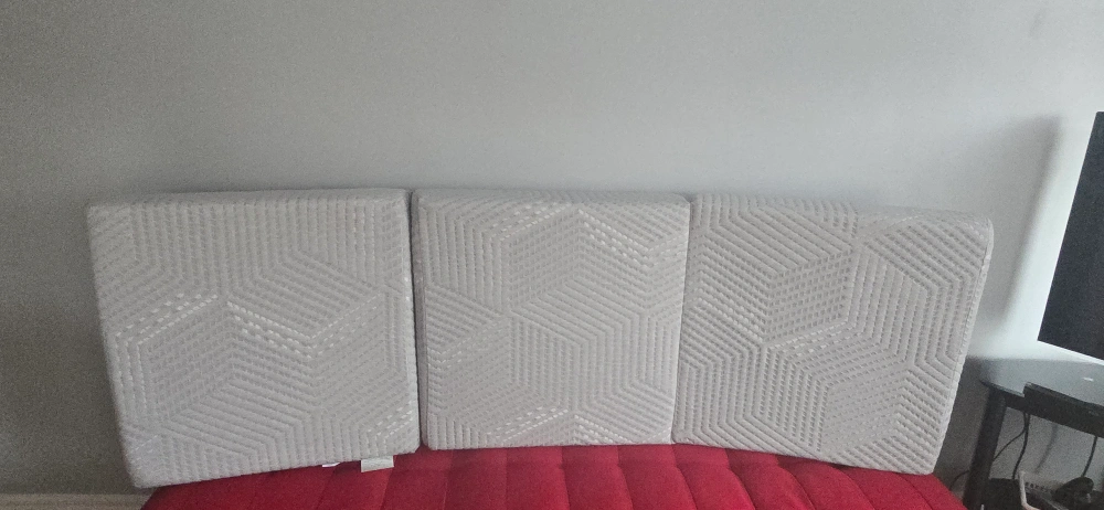 foldable memory foam mattress toppers. Zippered covers. Spot clean only. Light grey colour. Geometric pattern.