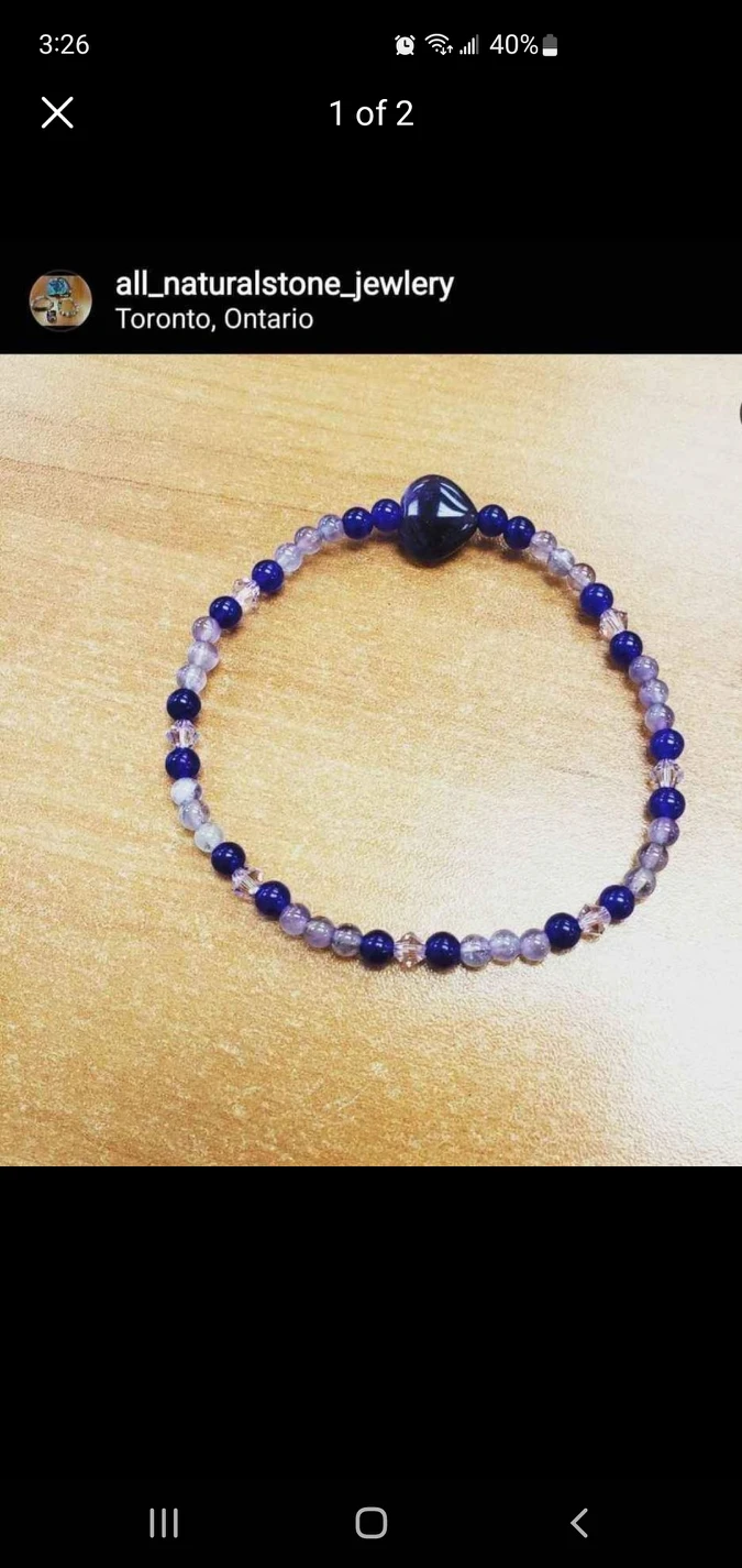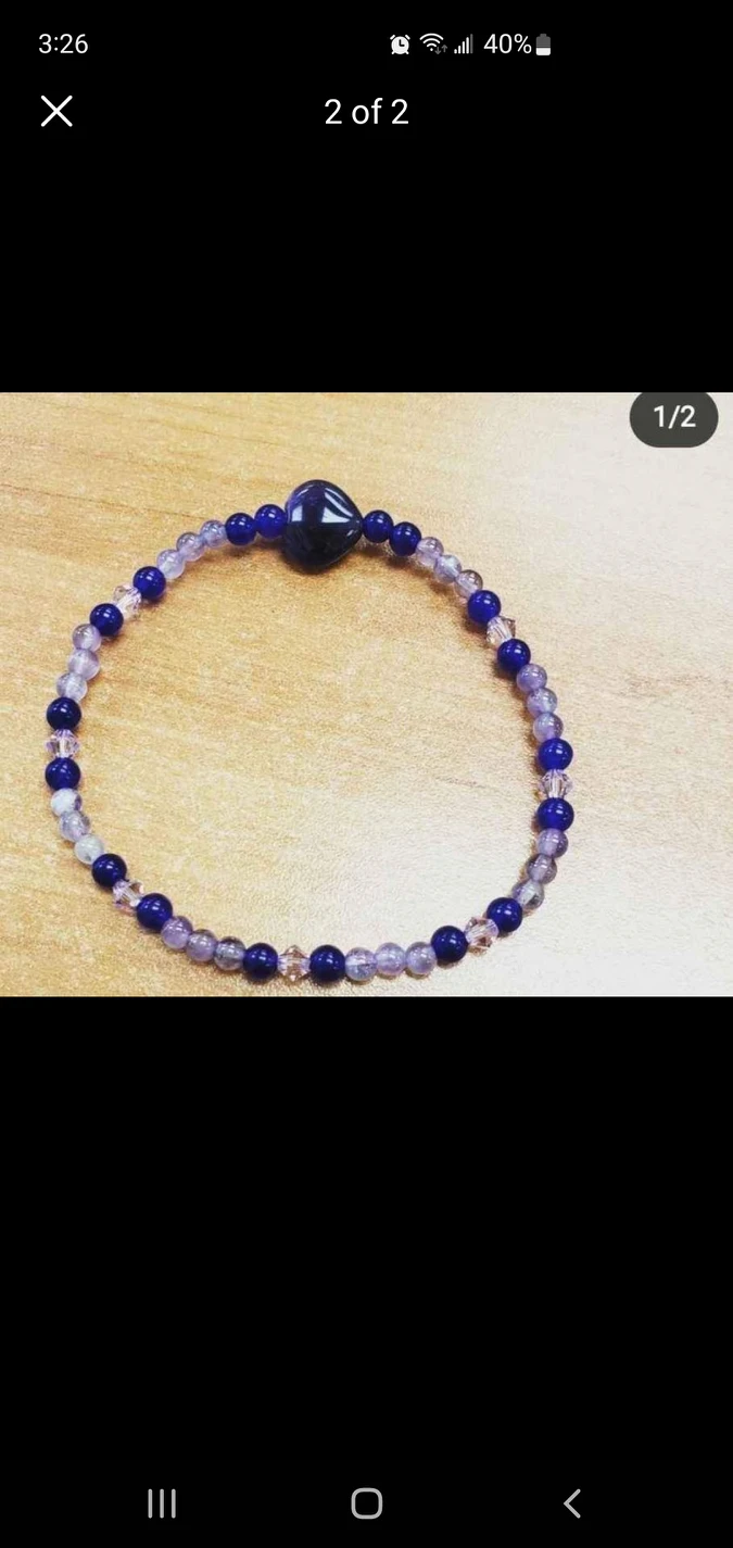 New bracelet, made with Amethyst and purple Jade and Swarovski crystals. It has a purple Amethyst heart in the center. never worn.