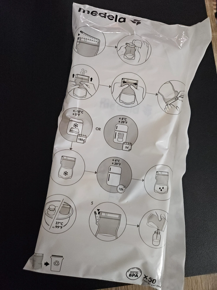 Medela Easy Pour Breastmilk Storage Bags | 50 Count 7oz/210ml| Disposable, Leakproof, Fast Freeze, Breast Milk Protection | Recyclable & BPA Free