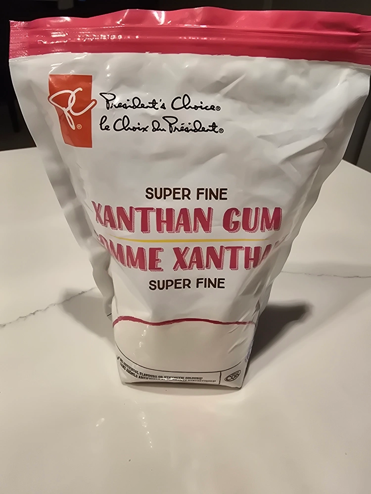 Bag of President's Choice super fine xanthan gum. Baking ingredient.