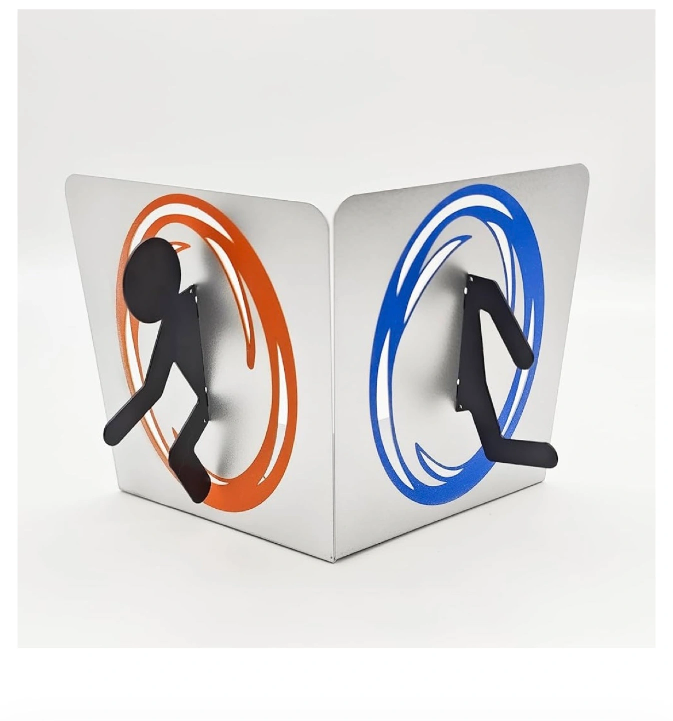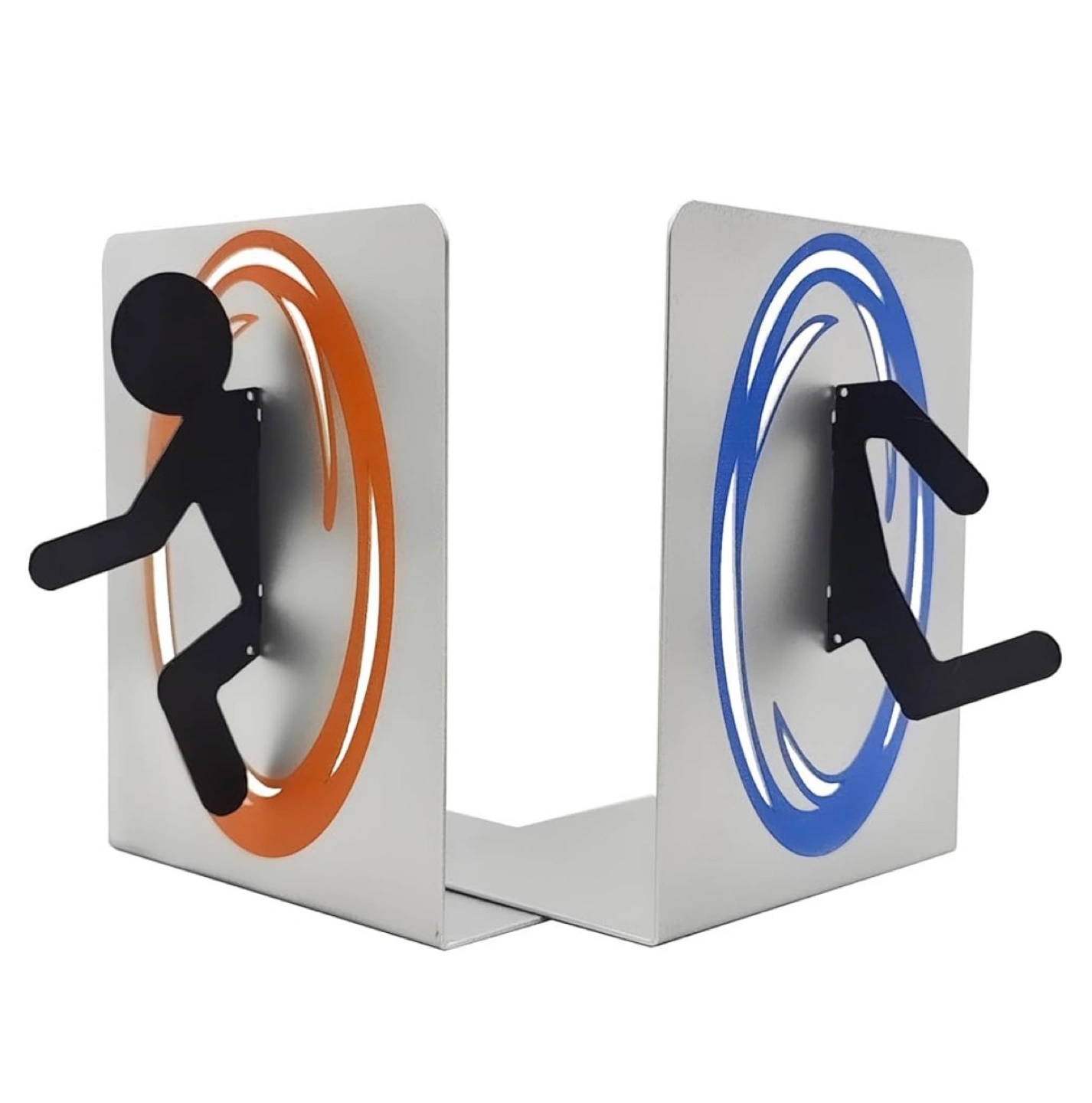 Metal bookends. Feature Portal game design. Great gift for gamers.