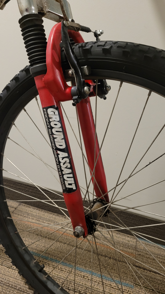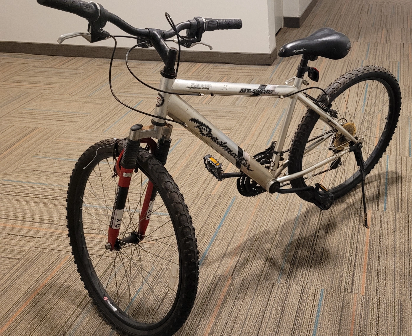 Used Roadmaster MT Sport mountain bike 26" Tires. Silver frame. Ground Assault front suspension system. EUC. medium size frame.