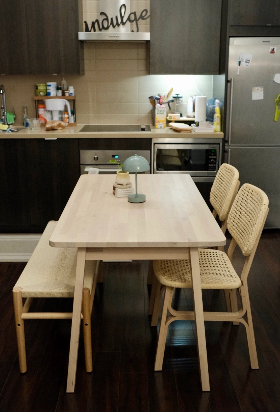 Ikea Norraker table. Solid birch wood Scandinavian dining table in excellent condition. Light cooler-toned birch colour, but see pictures of how the table looks in various lighting. Minimalist design and great for small spaces.