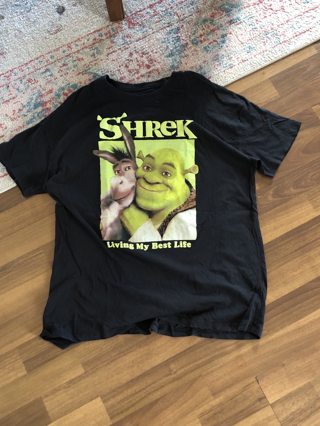 Buy & SellShrek T-Shirt - Living My Best LifeShrek T-Shirt - Living My Best Life$10Black Shrek t-shirt. Features Shrek and Donkey. Text reads "Shrek" and "Living My Best Life". Shows some minor wear.SizeLargeWHERE TO MEETWhitehornView MapSELLERamonyyWhitehorn574 reviews0 chats·0 favorites·5 viewsSEND CHAT TO SELLERHi amonyy! I’m interested in your listing.Hi amonyy! I’m interested in your listing.Get the Karrot app to chatSign In to chat