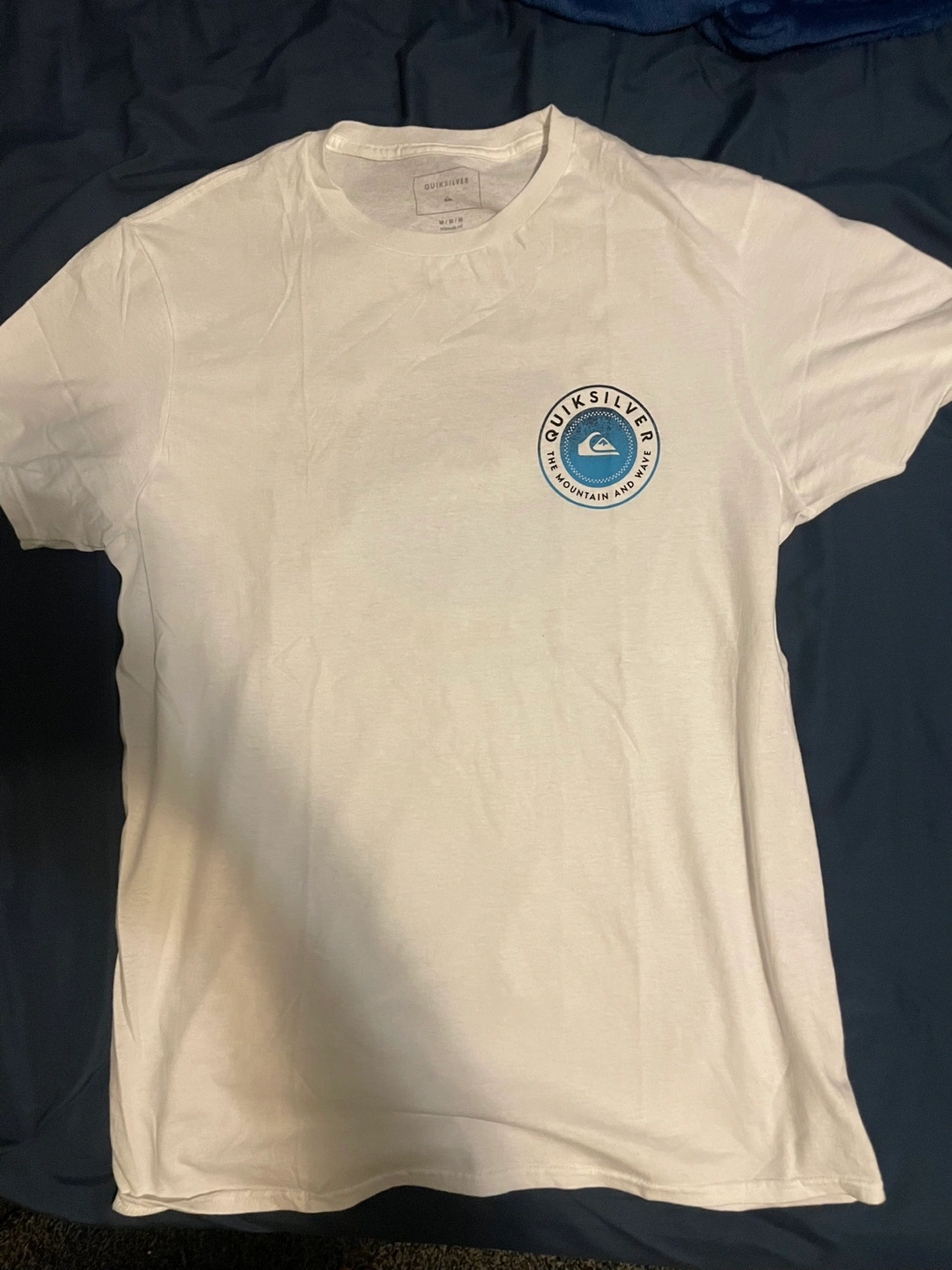 Men's Quiksilver t-shirt. White. Medium size. Features a circular logo on the back. 100% cotton. Haven’t used the t shirt once