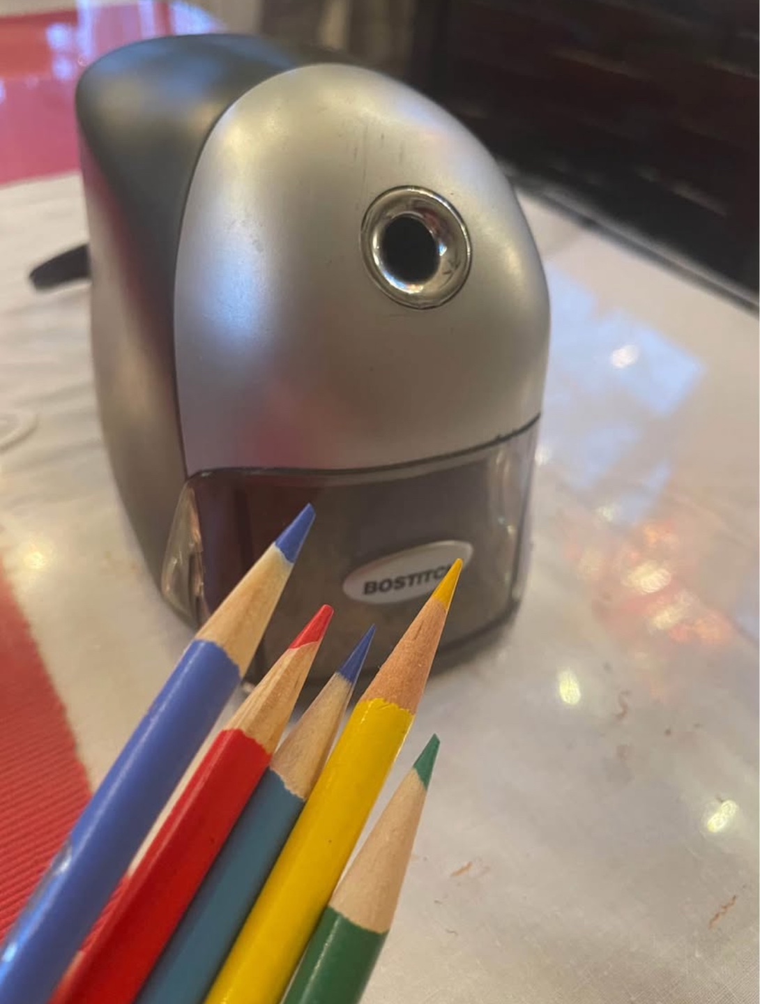 Bostitch electric pencil sharpener to sharpen pencils and pencil crayons to a fine point. Great for kids!