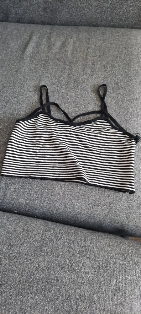 Striped bralette, black and white. Features criss-cross straps. Small size.