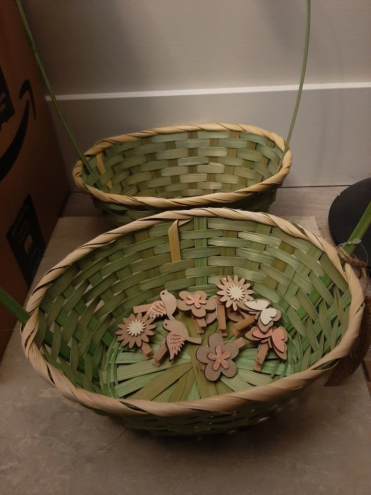 đź’šAdorable Spring Decor Set: Two-Tiered Basket & Wooden Clips