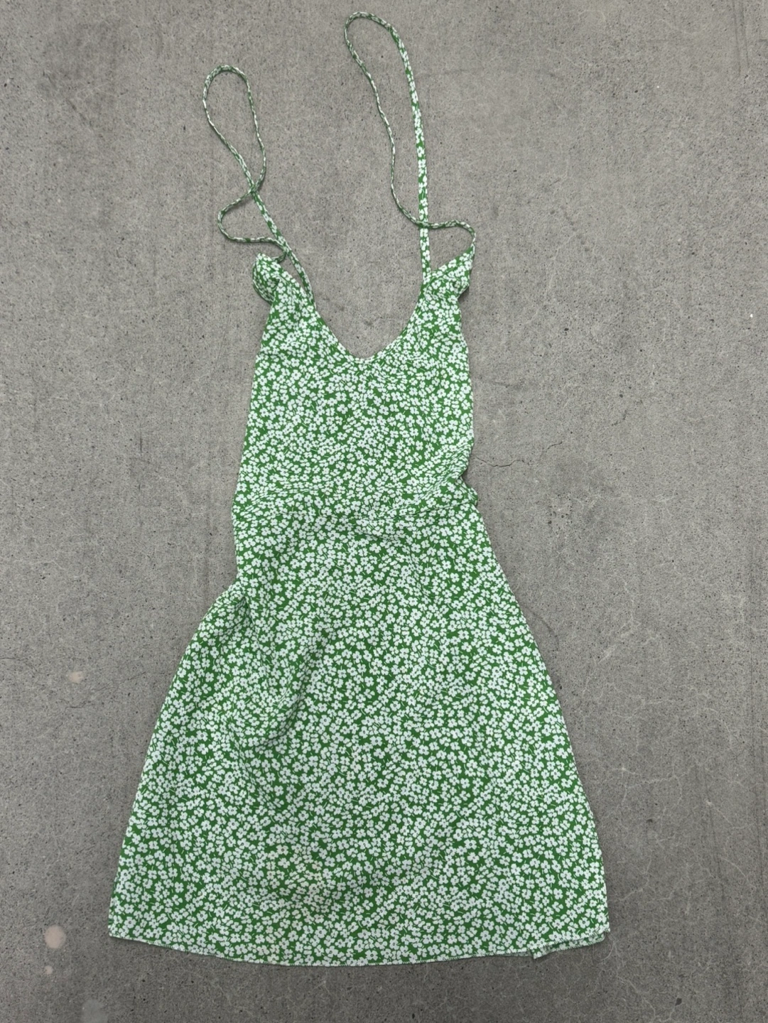 Nice, flowy material. Perfect for spring/summer! Open back detail with back straps to adjust the fit to your liking and a slit at the end. Very flattering! I love this dress but it sadly ended up being too short for my liking (Iβm 5β10) lol.
