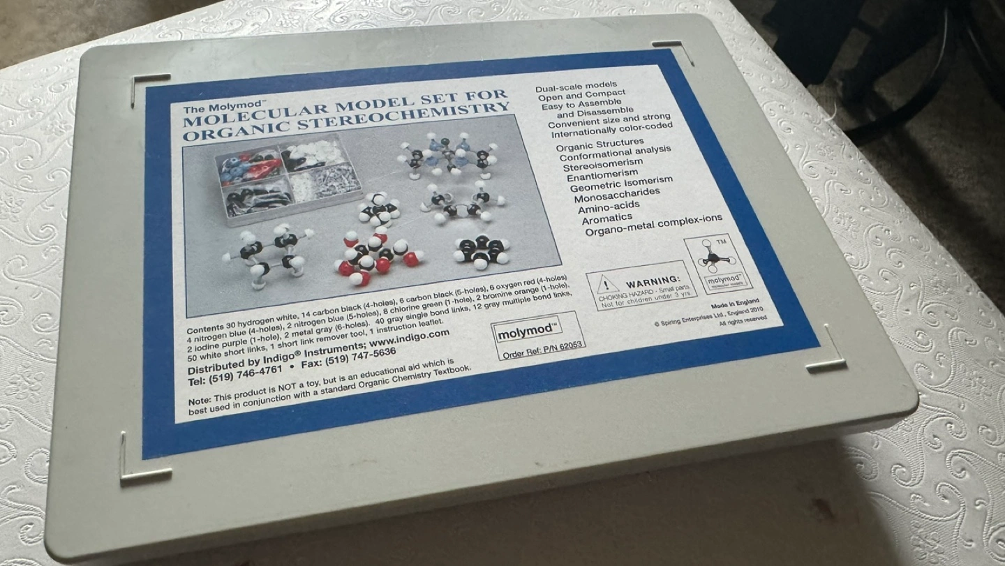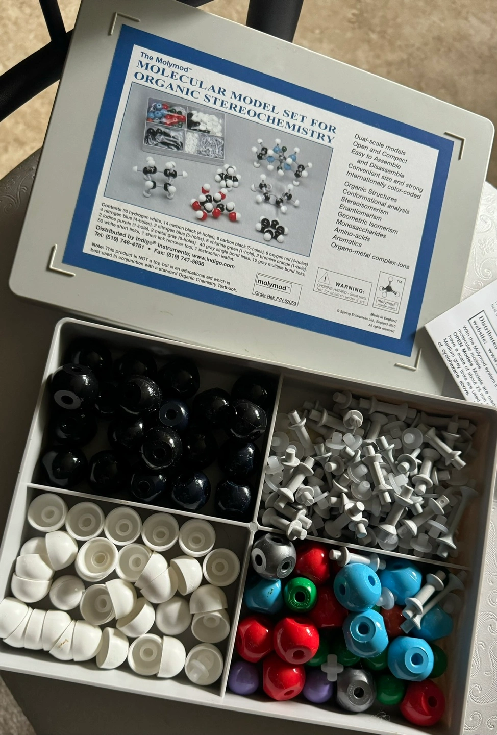 Molecular model set for organic chemistry. Includes various atoms and bonds. Great for students or educators. Dual-scale models. Easy to assemble and disassemble. Convenient size and strong.