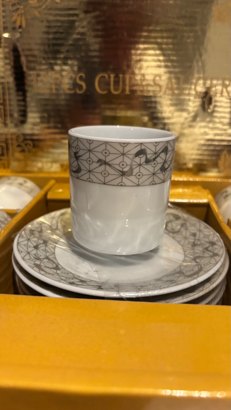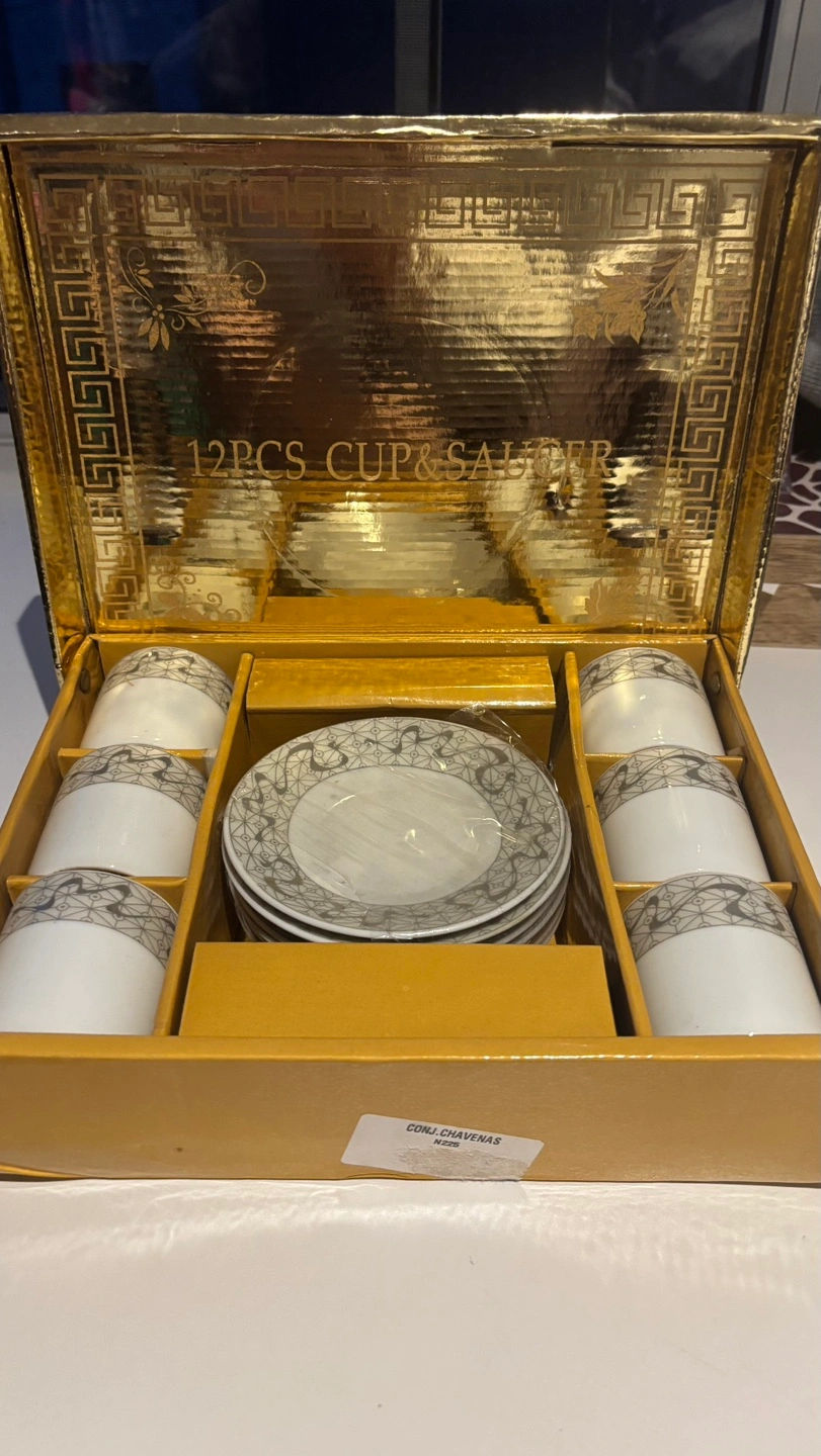 277Elegant patterned 12-piece cup and saucer set. Perfect for tea time. •BNIB •Six Espresso Cups and Six Saucers