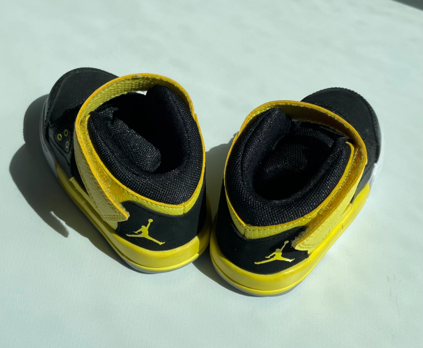 Get ready to elevate your little one's shoe game with these adorable toddler Jordan sneakers! Perfect for your little baller, these stylish shoes feature a vibrant yellow and black colourway, ensuring your child stands out on the playground. Although these shoes are in used condition, they still have plenty of life and swagger left. They would look great on your little one.