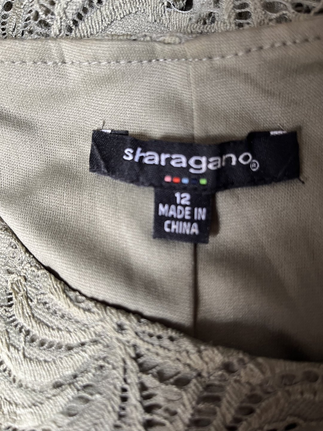 Sharagano Olive Green Lace Dress Size 12