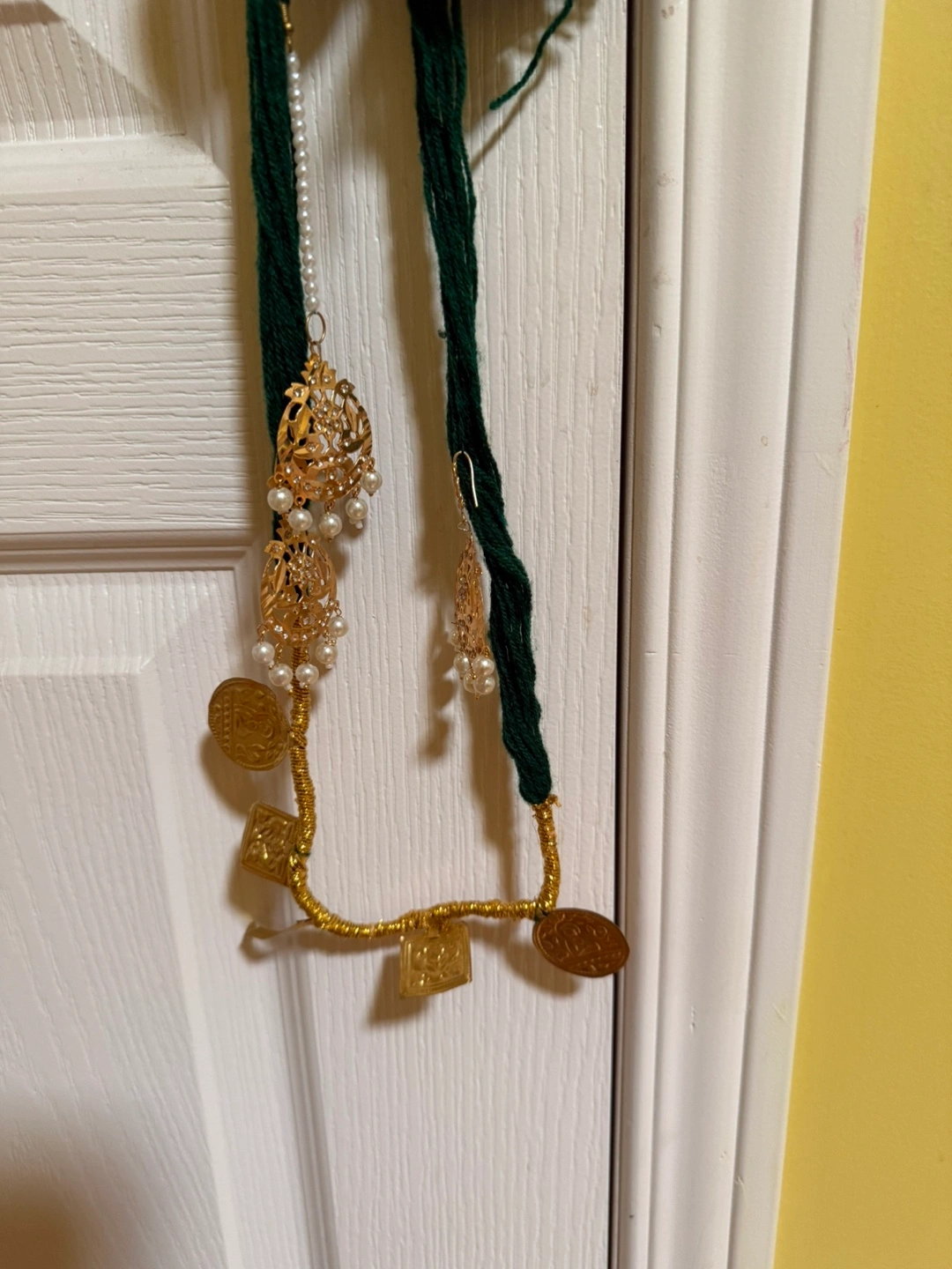 Beautiful kids Bhangra outfit. Includes kurta, churidar, waistcoat, dupatta, and headpiece. Pink and black colour scheme. Gold embellishments. Great for dance performances or special occasions.