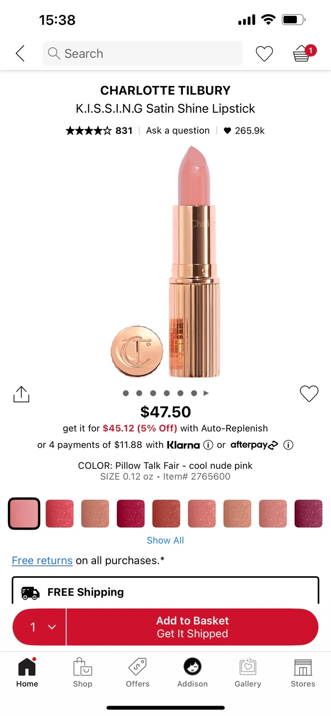887Charlotte Tilbury K.I.S.S.I.N.G Satin Shine Lipstick in Pillow Talk Fair. Cool nude pink shade. Got as part of a Sephora Favorites Pout Lip Kit but I have a ton of these already. New, never used. Set was purchased April 6, 2025. Price is firm as I’m happy to keep