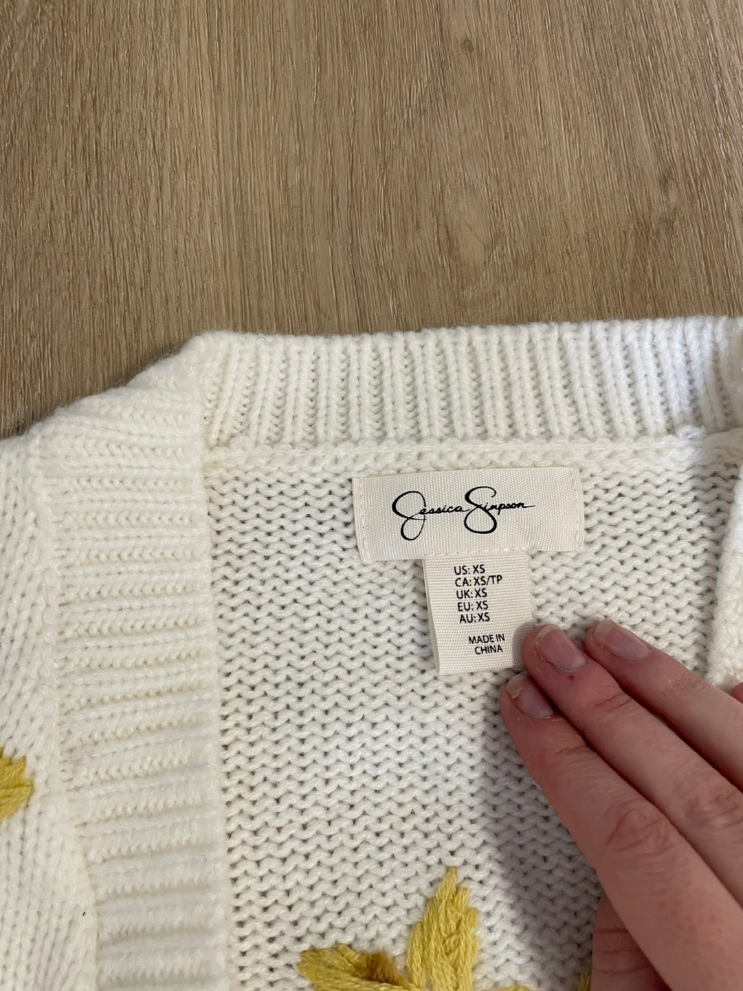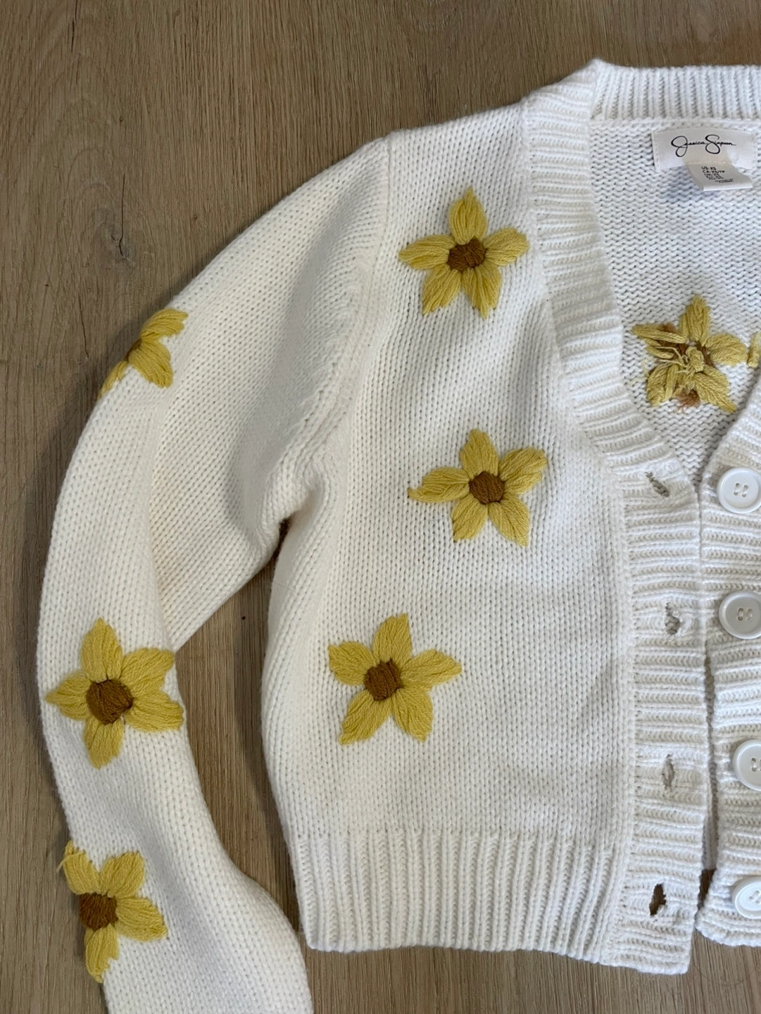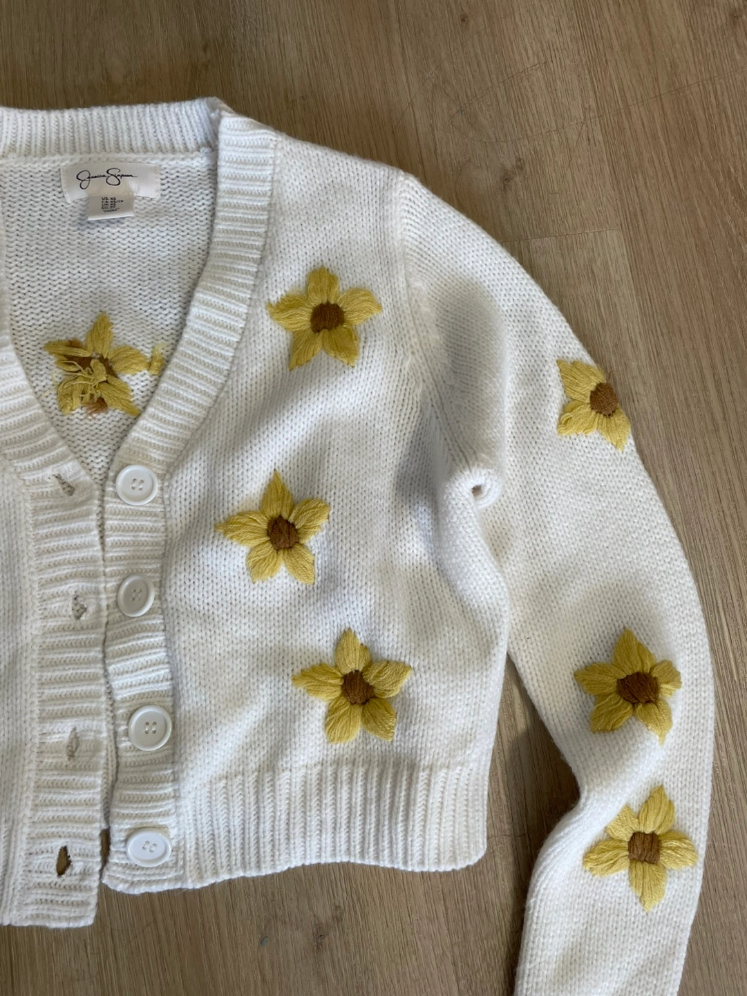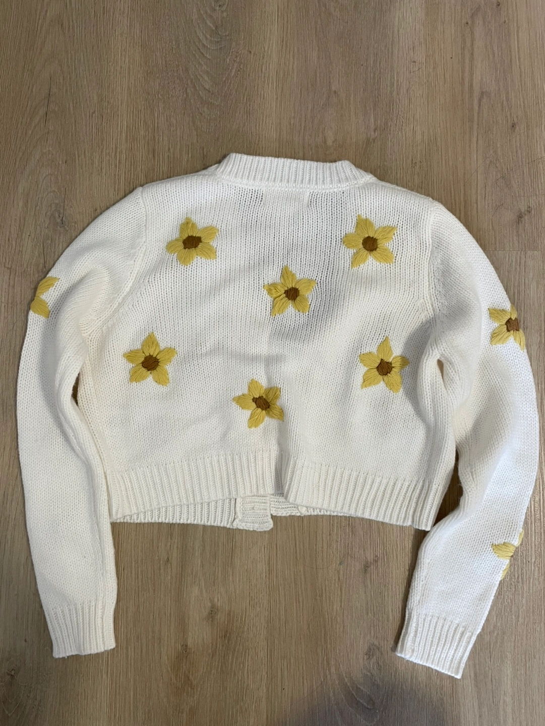 Cream coloured cropped cardigan with yellow sunflower embroidery. Button closure. Excellent condition, worn only a couple times. Size XS.