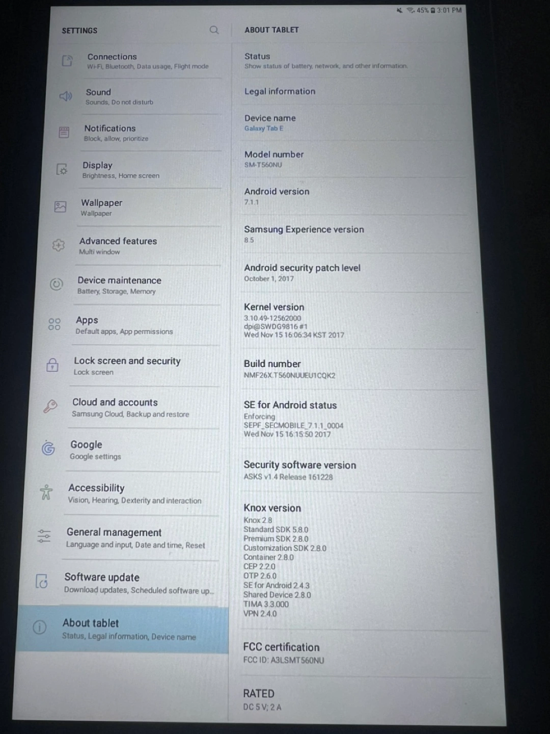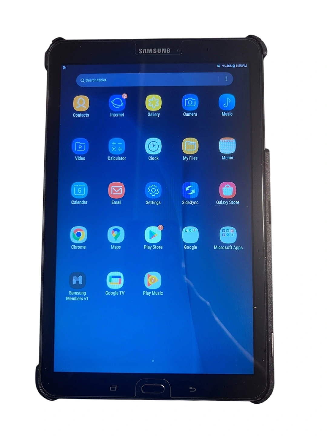 Pre-loved Samsung Galaxy Tab E tablet. Includes a black protective case. Android operating system. Excellent working order.