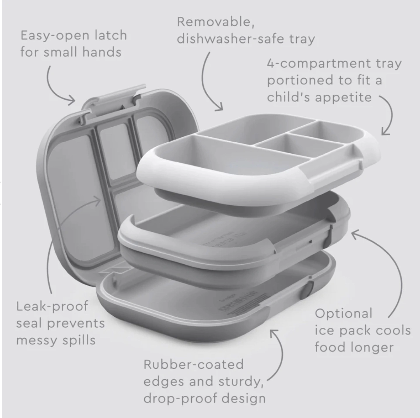 LEAK-PROOF TECHNOLOGY: Meals and snacks stay fresh and mess-free from kitchen to class to after-school activities. One kid-friendly latch makes it easy for small hands to open and close while enjoying their lunch during school, camp, or daycare. Plus, the durable outer shell has a rubberized edge to resist drops and cracks; making it ideal for active kids on the go!