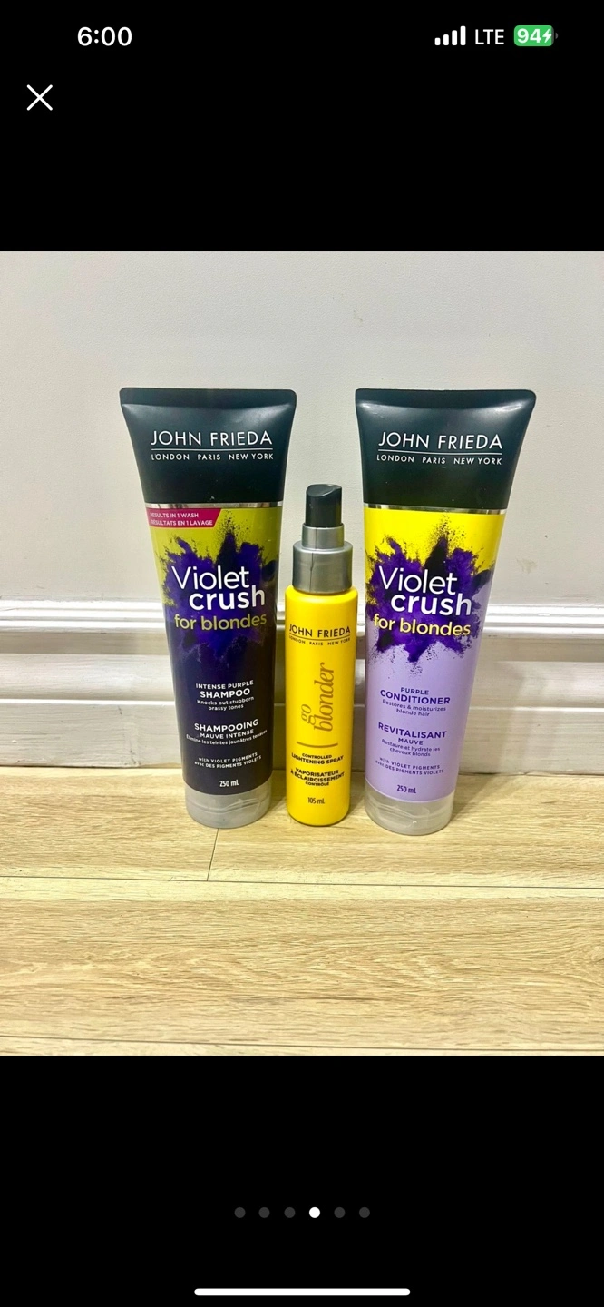 John Frieda trio set- purple shampoo, conditioner,hair spray