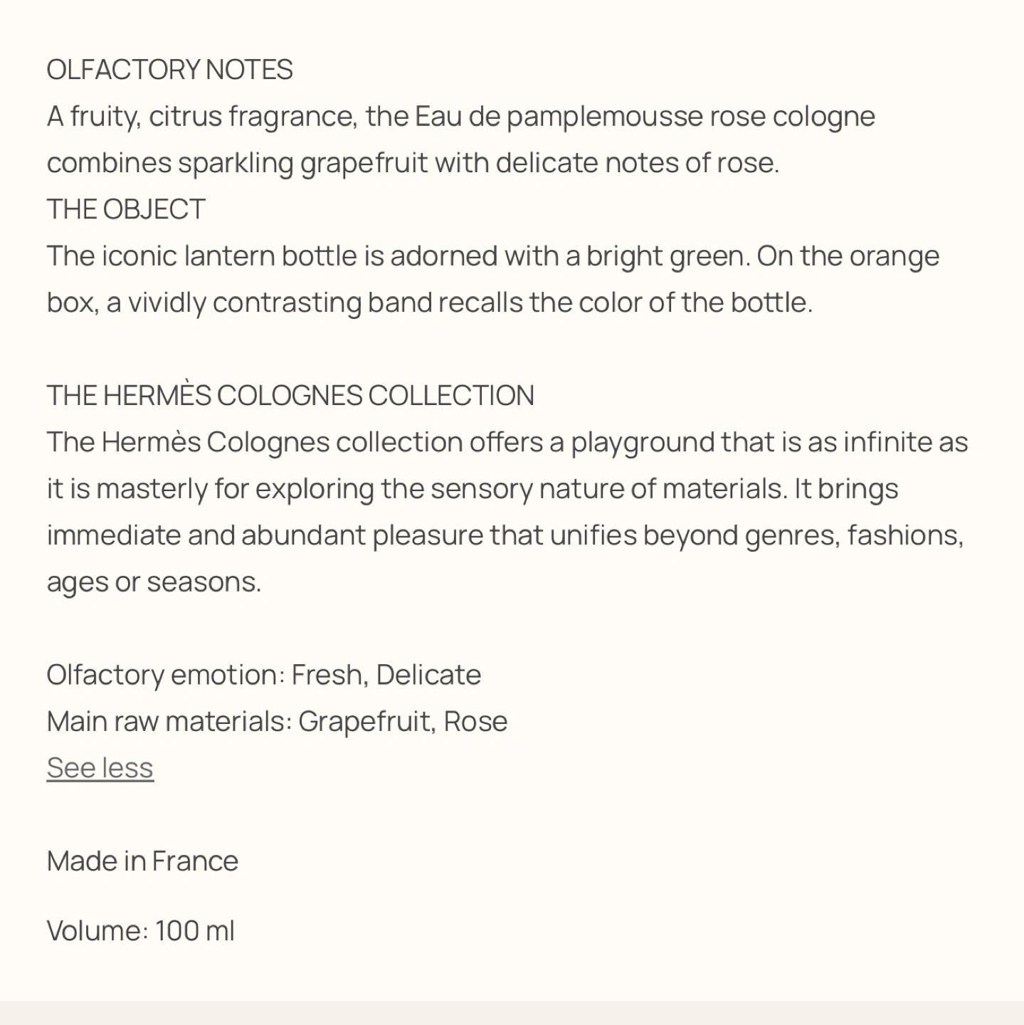 Hermes eau de pamplemousse rose eau de cologne 100ml