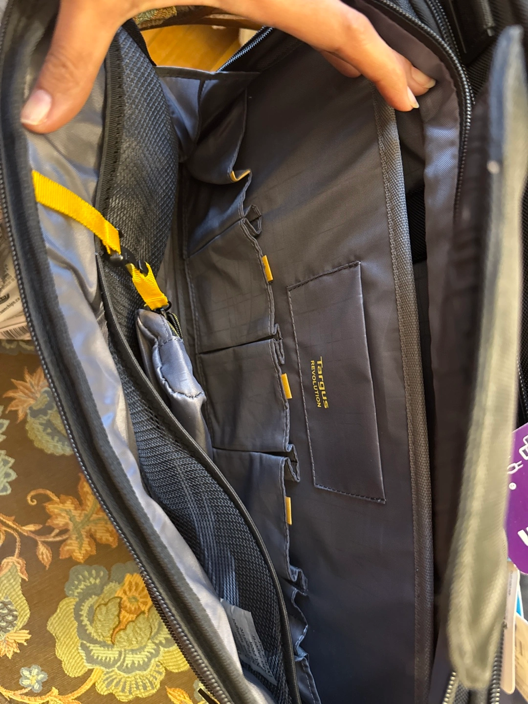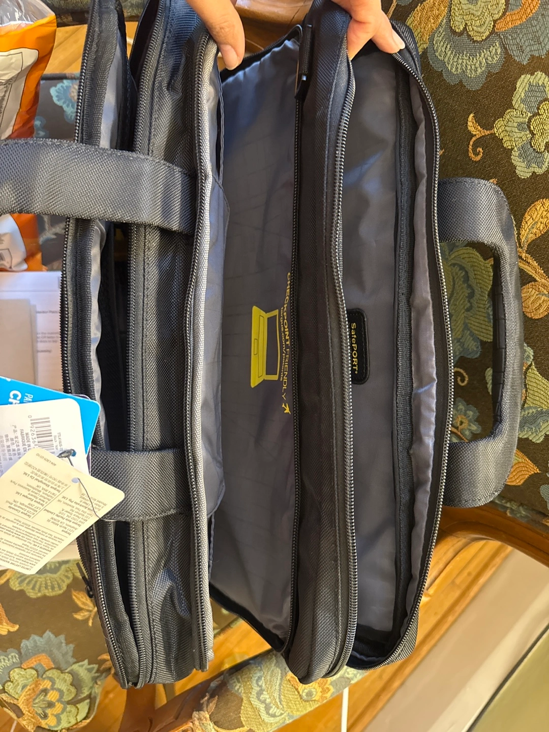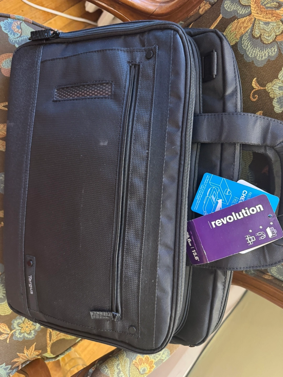 Black laptop carrying case. Multiple compartments and pockets. Checkpoint friendly design. Suitable for 15.6 inch laptops.
