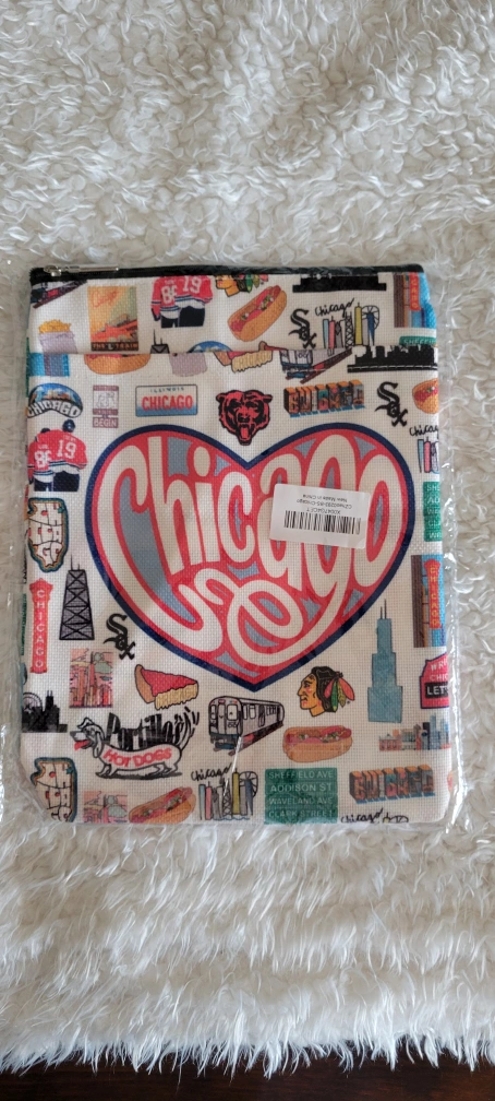 Brand new still in plastic adorable zipper pouch features a Chicago theme. Perfect for small items.
