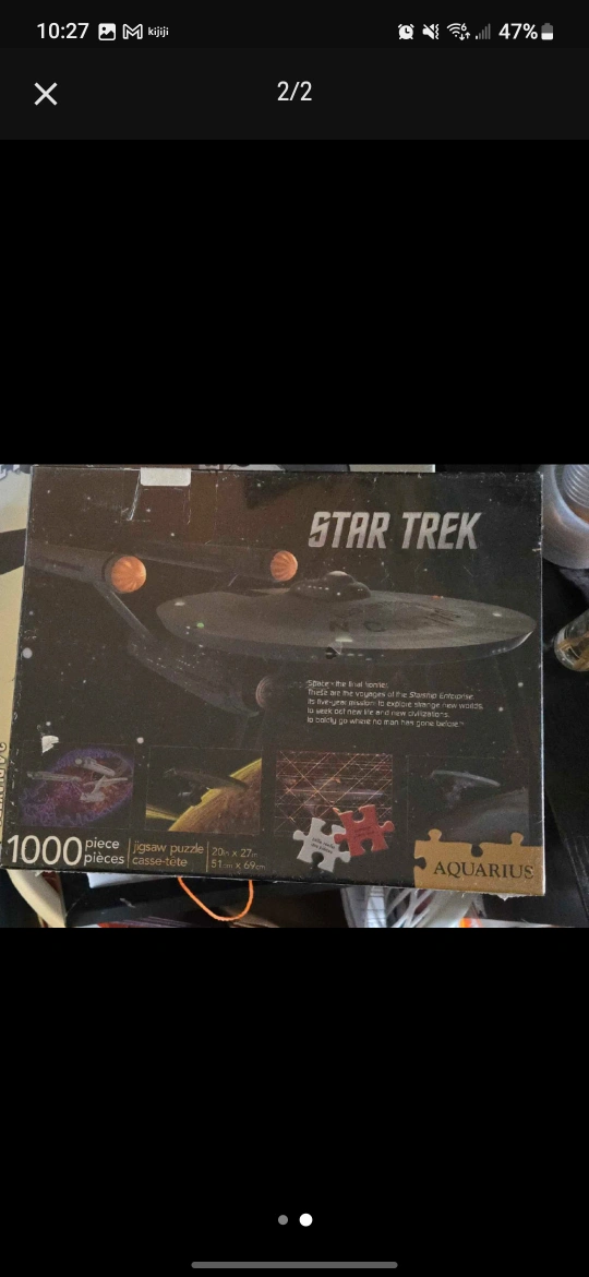1000 piece jigsaw puzzle. Aquarius brand. Features the U.S.S. Enterprise. Measures 51cm x 69cm.