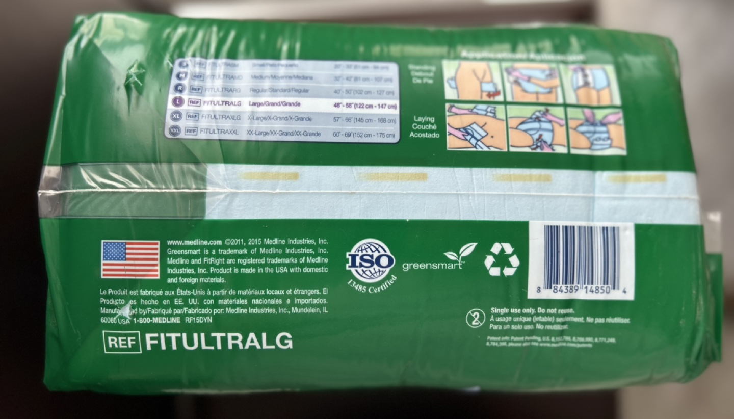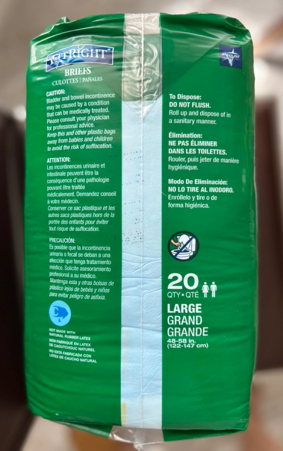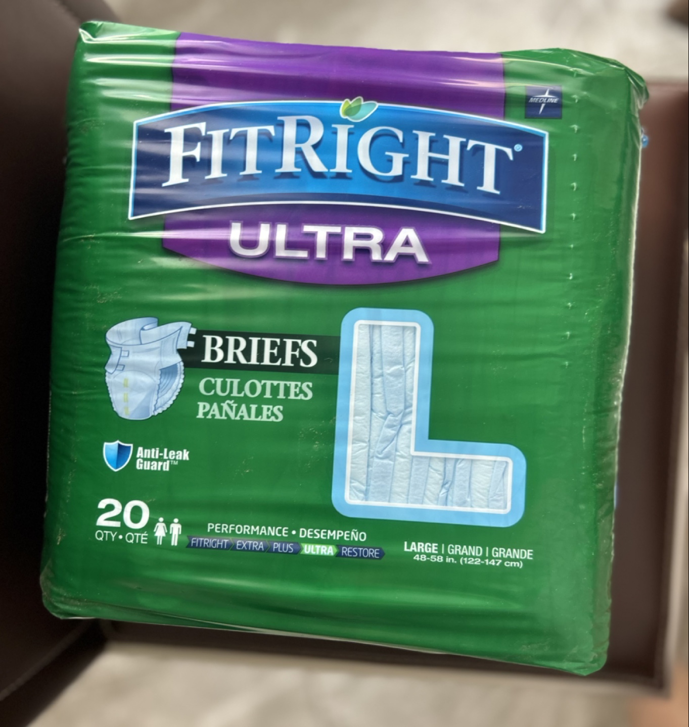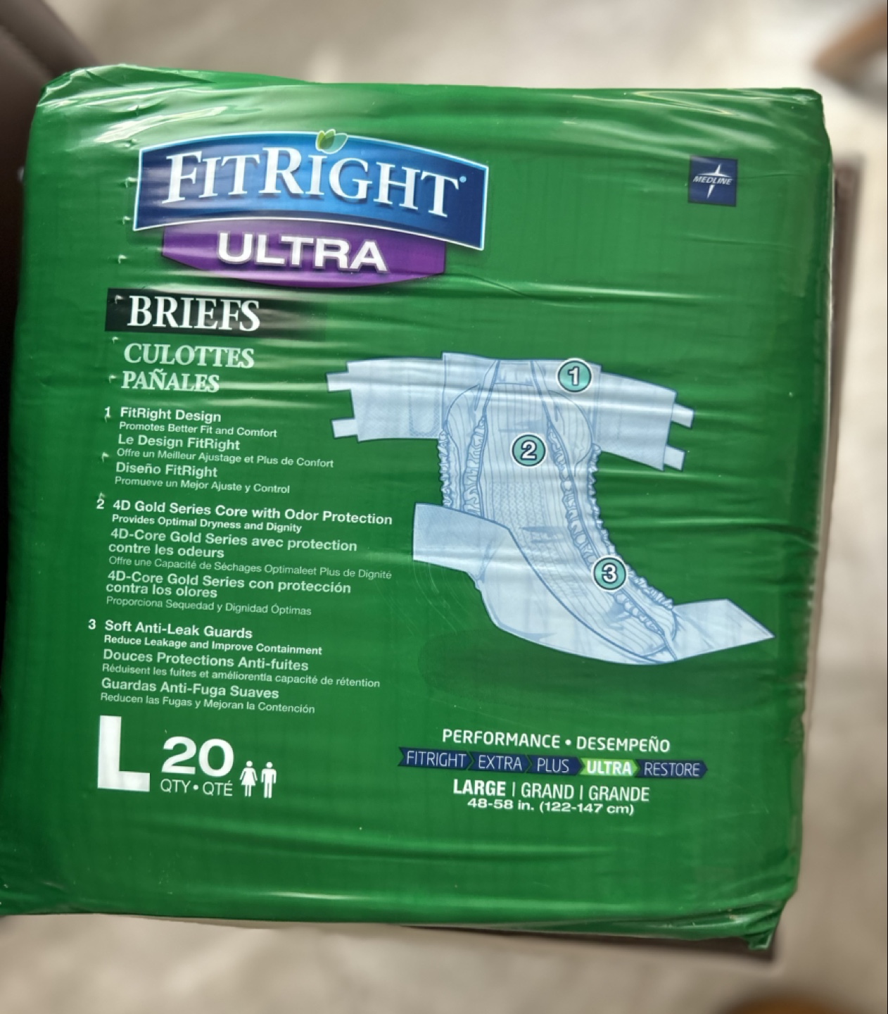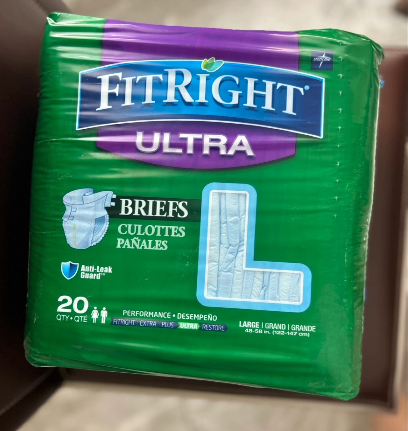 Women’s Adult briefs, size large, 20 count per package. Absorbent and comfortable. Good for incontinence and special needs.