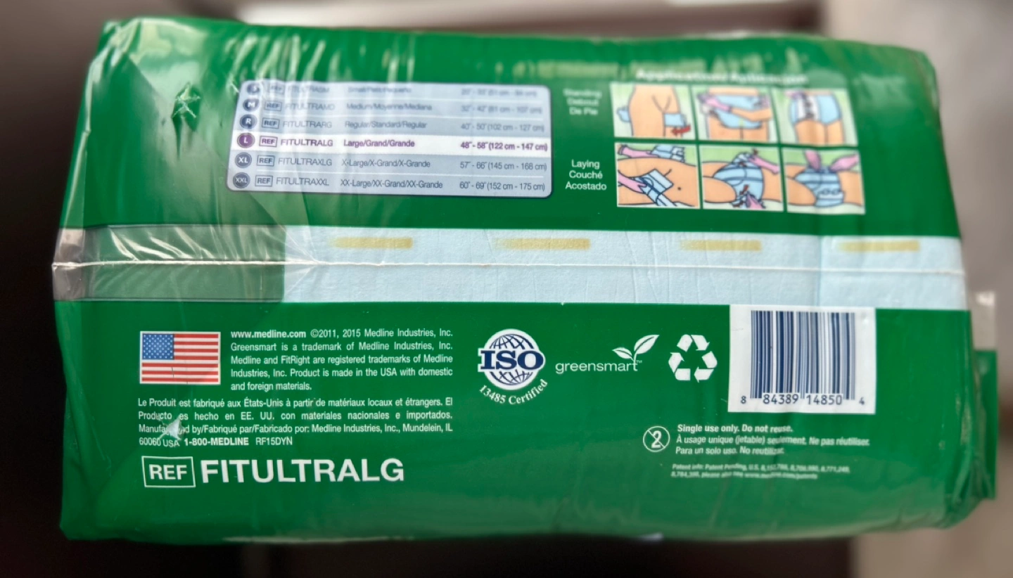 Women’s Adult briefs, size large, 20 count per package. Absorbent and comfortable. Good for incontinence and special needs.