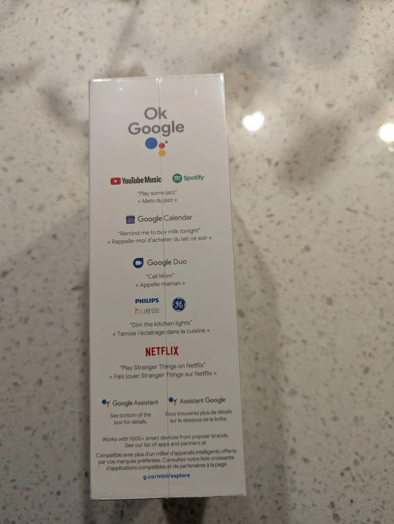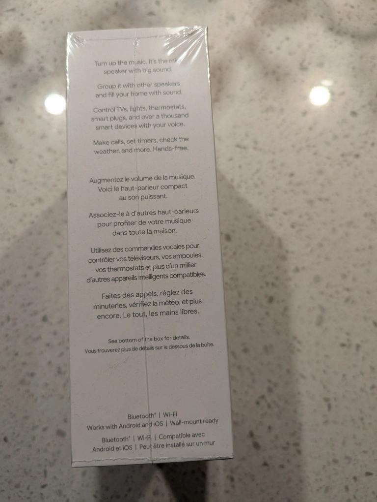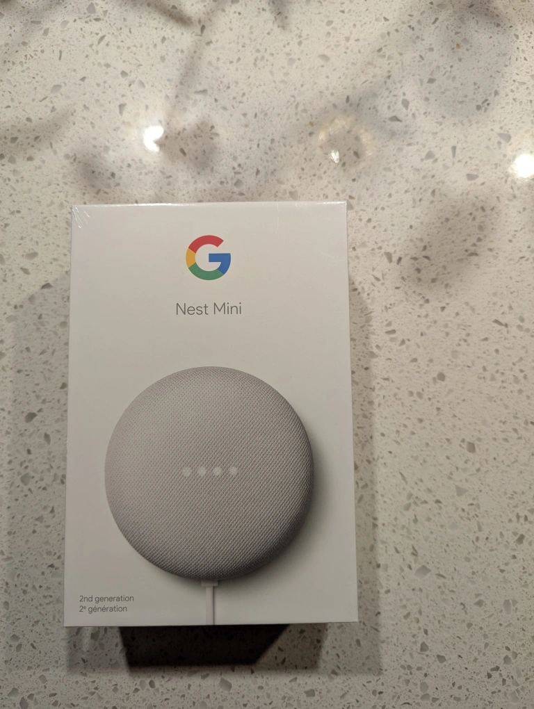 New, sealed Google Nest Mini 2nd generation smart speaker. Compact design. Works with Bluetooth and Wi-Fi. Control smart home devices. Make calls, set timers. Chalk colour.