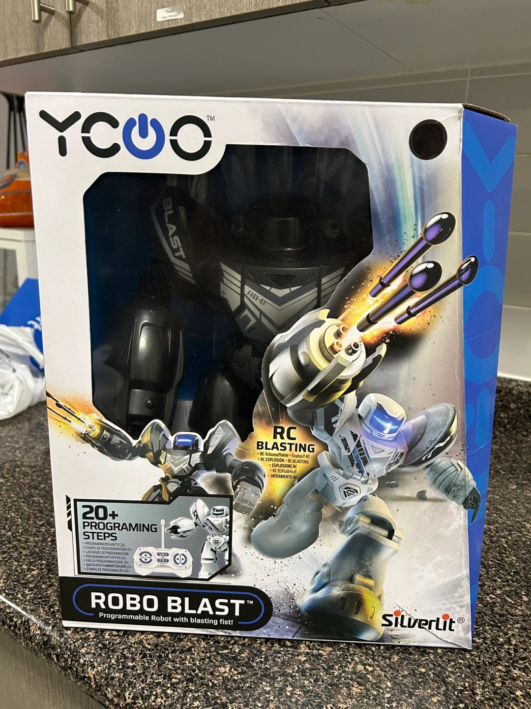 Robo Blast Programable Robot with blasting fist Fun toys for kids of age group 6 to 10 Used only once (my son is too big to play with this) Cash only Pick up only