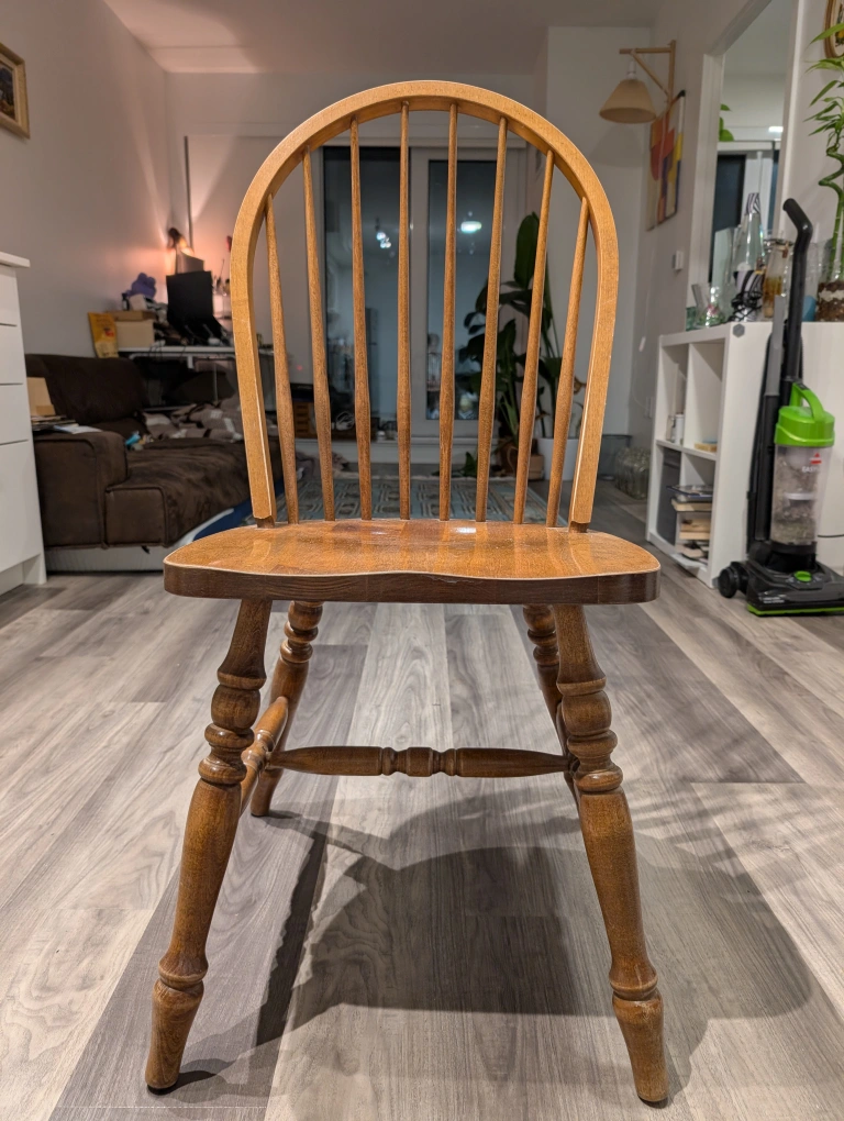 Classic wooden Windsor chair. Simple design. Solid wood construction. Suitable for dining room or kitchen. Good condition.