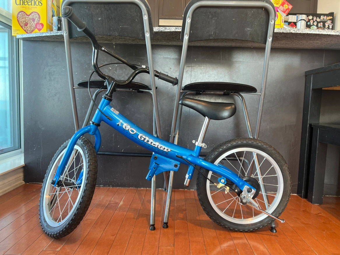 Blue Go Glider balance bike. Suitable for children 5-10 yrs (up to 125lbs) to play and learn bicycling. Original price $192. Almost new. Pick up only.