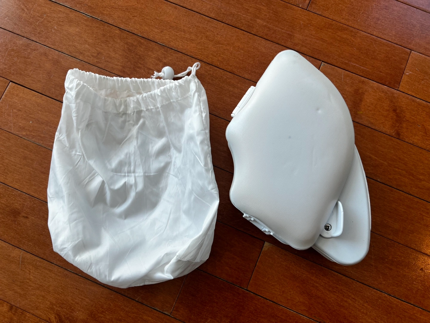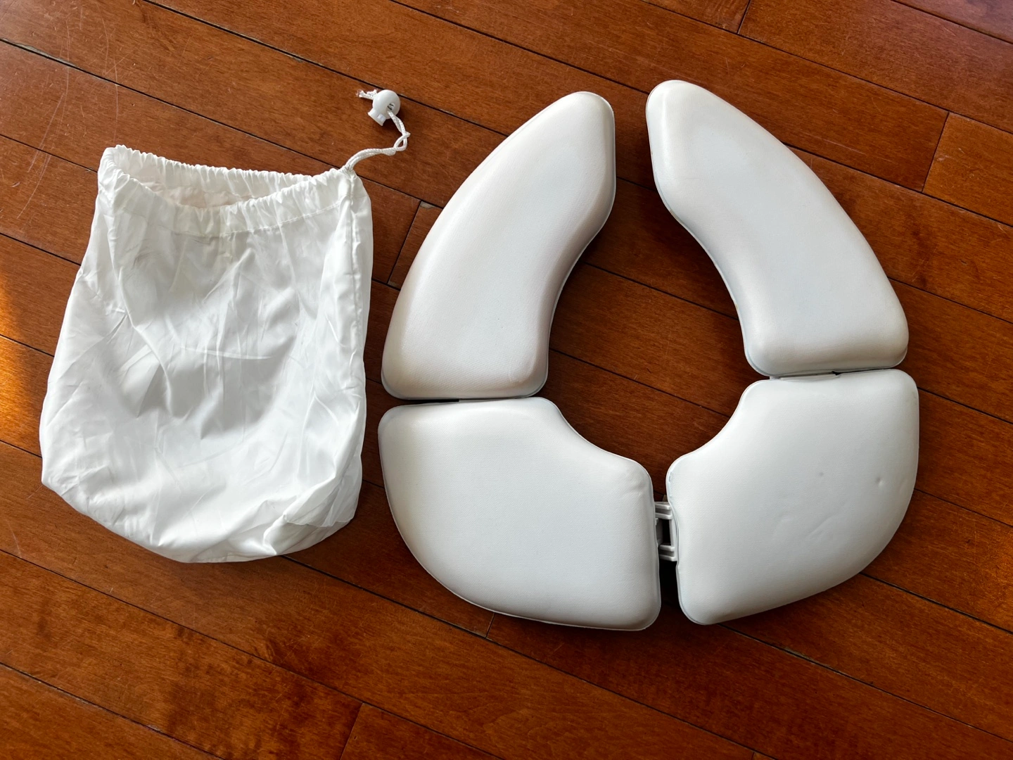 Portable potty seat. Four foldable sections. Includes a drawstring storage bag. Easy to clean. Pick up only.