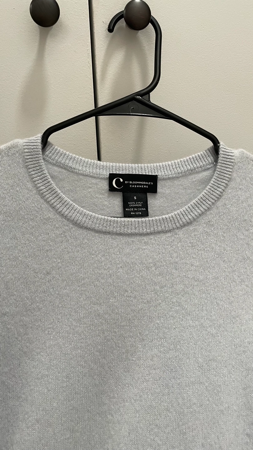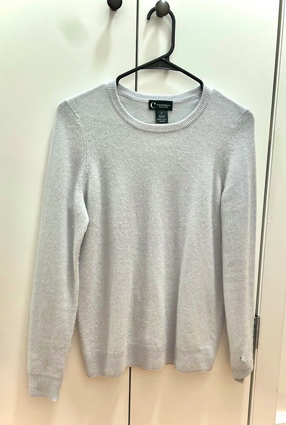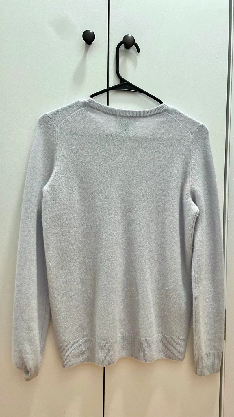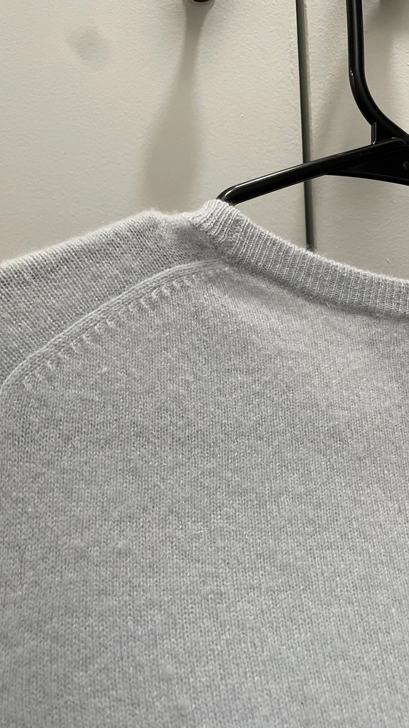Light gray cashmere sweater. Super soft, warm during the coldest weather. Crew neck. Perfect all through winter.