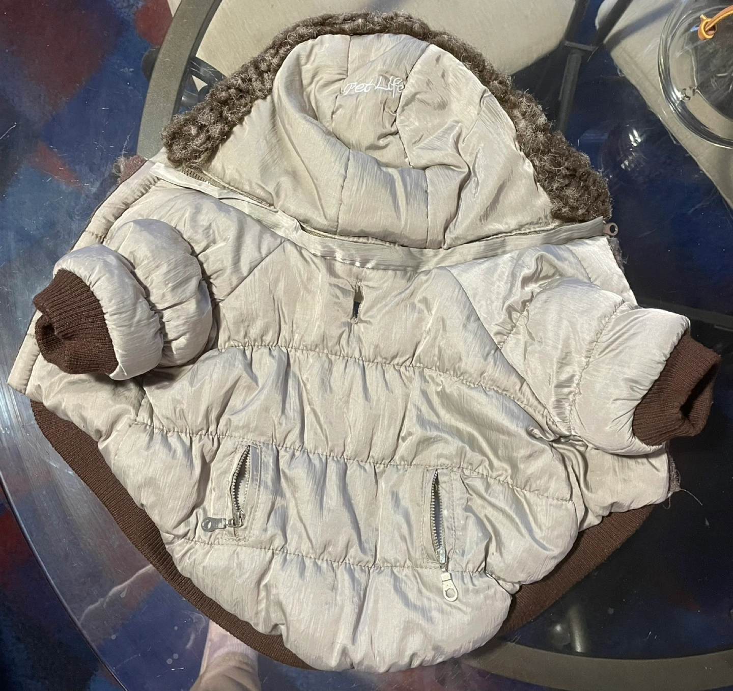 💚Adorable beige puffer jacket for your small dog.