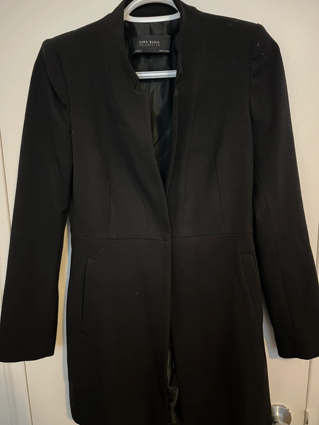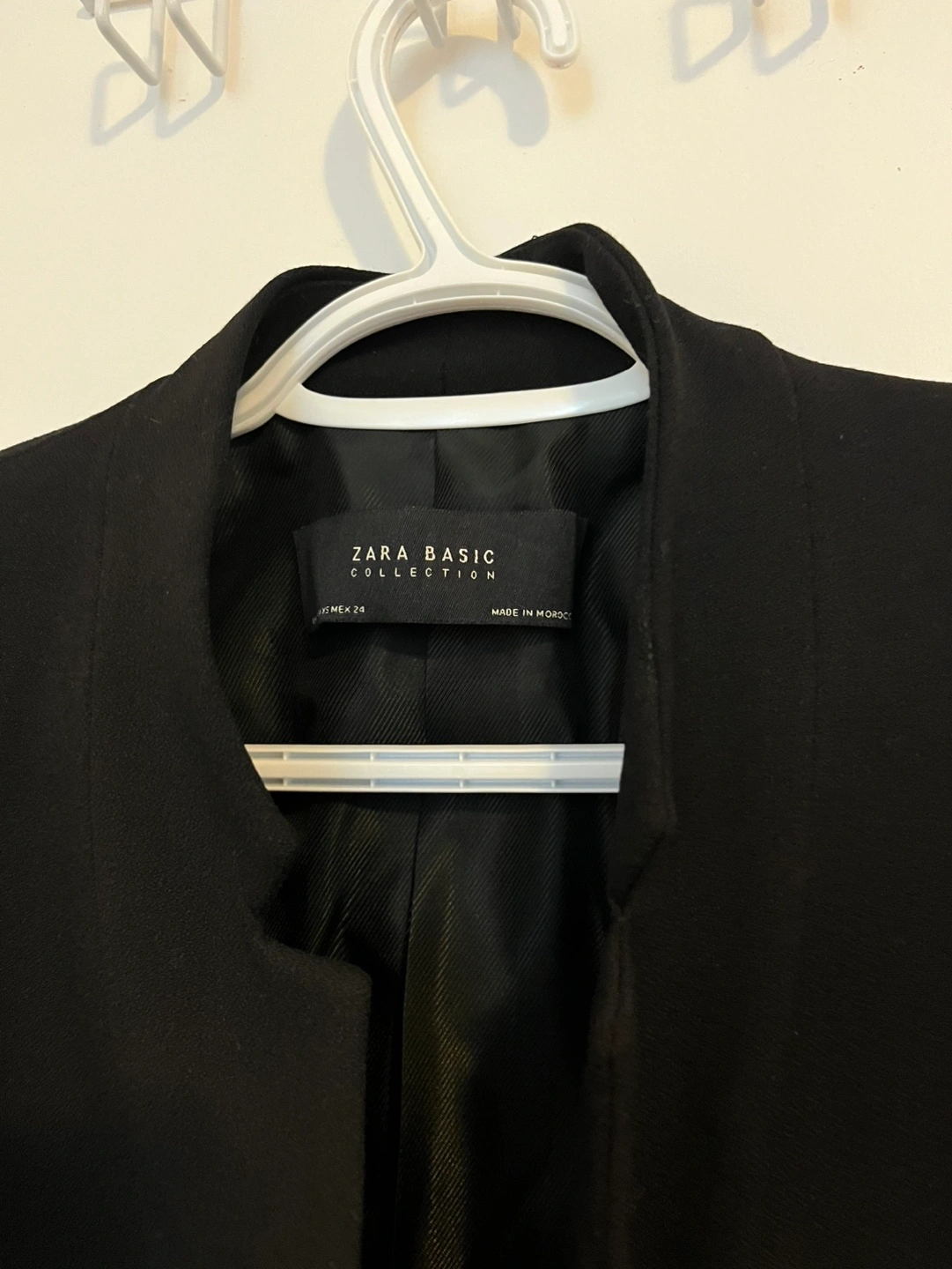 Black blazer, long sleeves, pockets. Great for work or casual wear. Made in Morocco. Size extra small