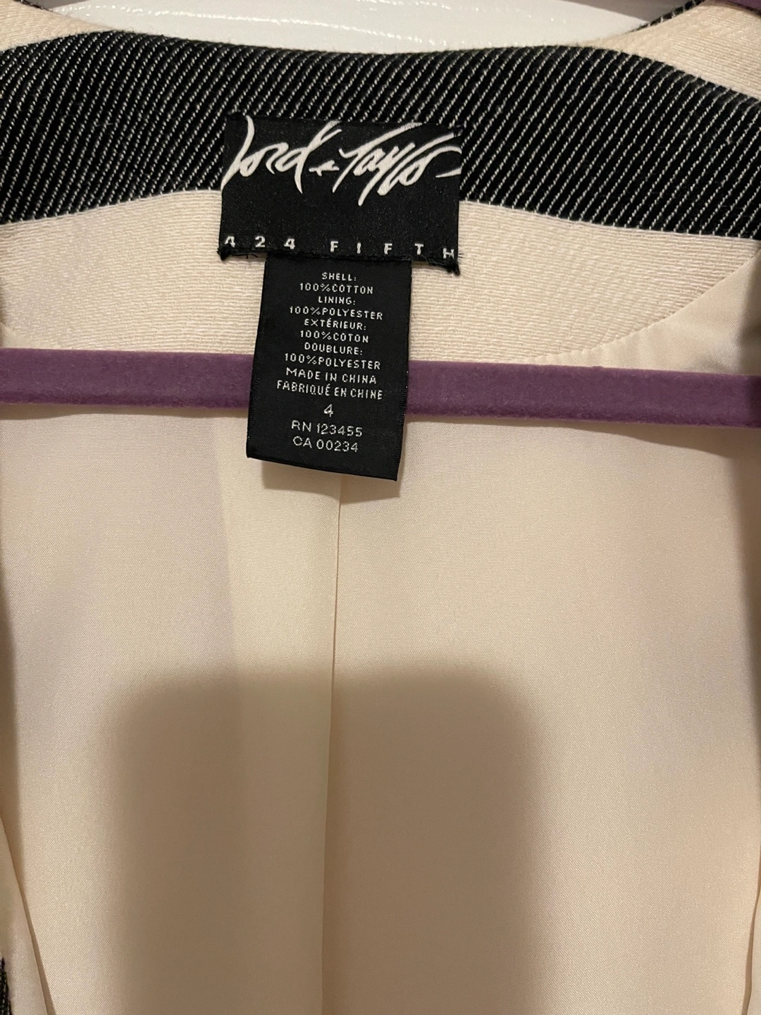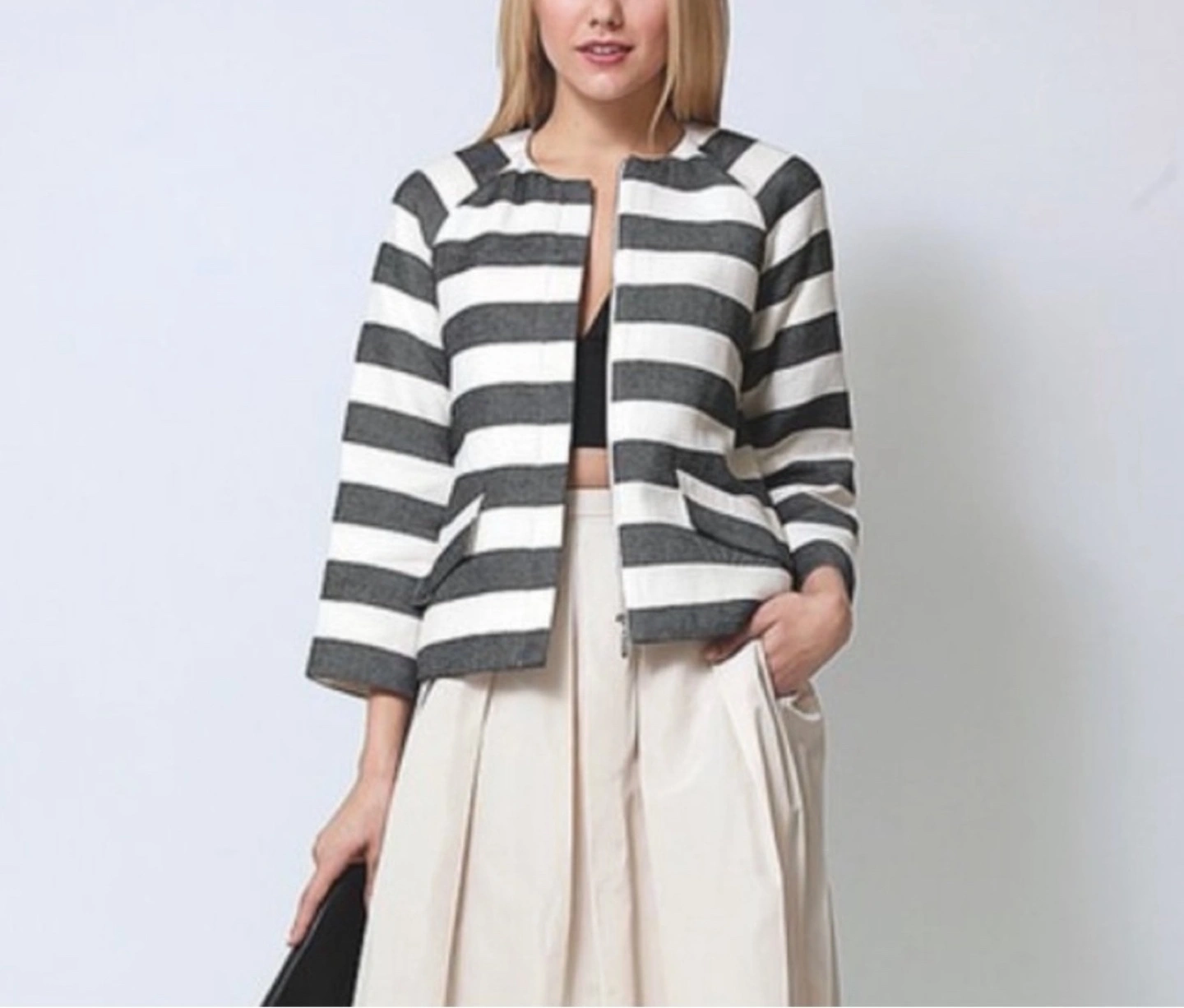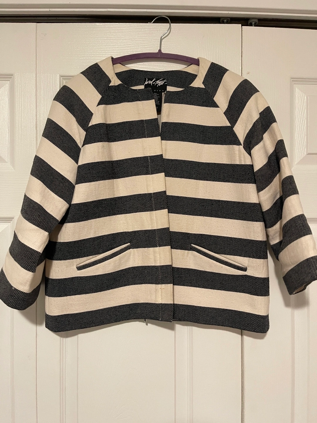 Striped jacket. Black and white. Three-quarter sleeves. Front zipper closure. Size 4. Brought in The bay, I can not fit in now, but very business casual, beautiful and comfortable.