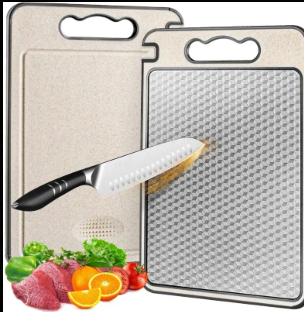 Healthy Cutting Board. * It's a new product. * 304 Stainless double-sided cutting board. * Prepare different food types separately and hygienic ally. * Tabs on board marked for different food types: Raw meat, Fish, Vegetables and Cooked food.