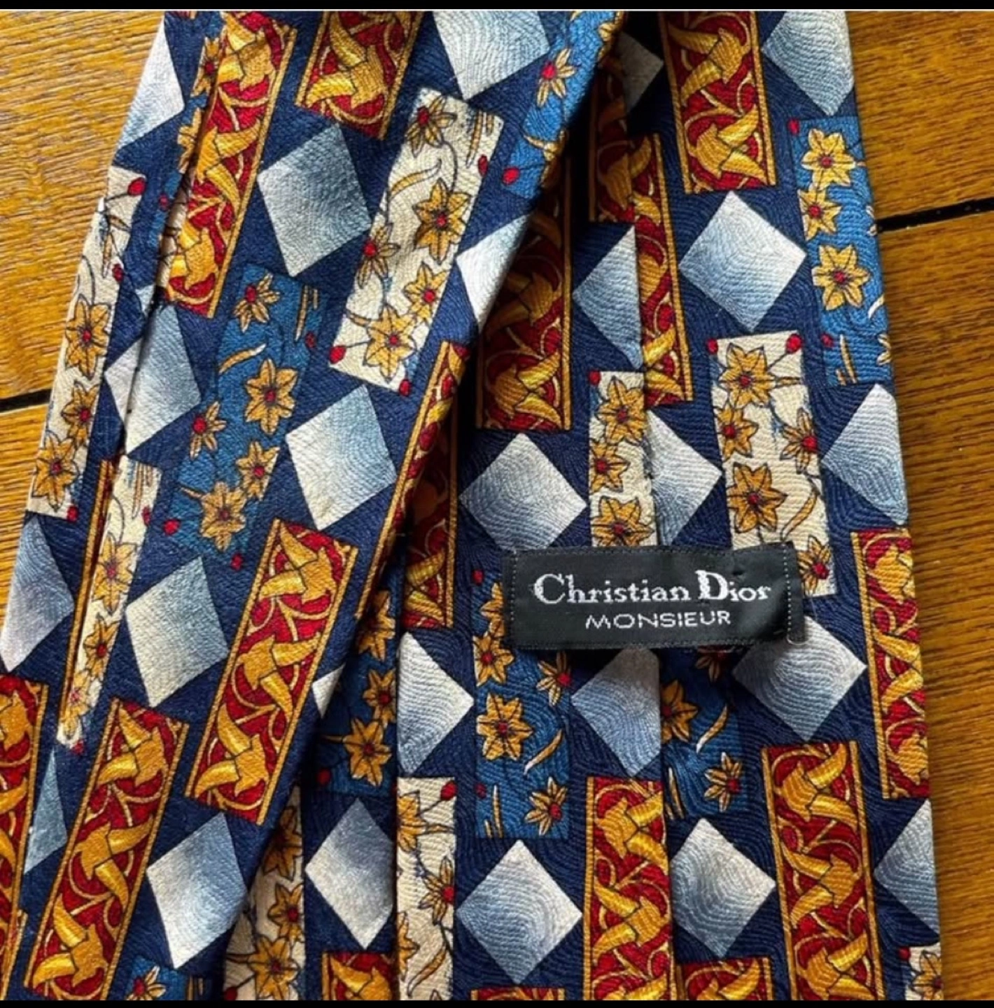 Beautiful Rare Christian Dior Monsieur Vintage Tie Made of 100% Silk. Truly a precious piece that feels amazing. The inner material also feels amazing with purple silk embroidered with “Christian Dior”. Has unique Christian Dior design